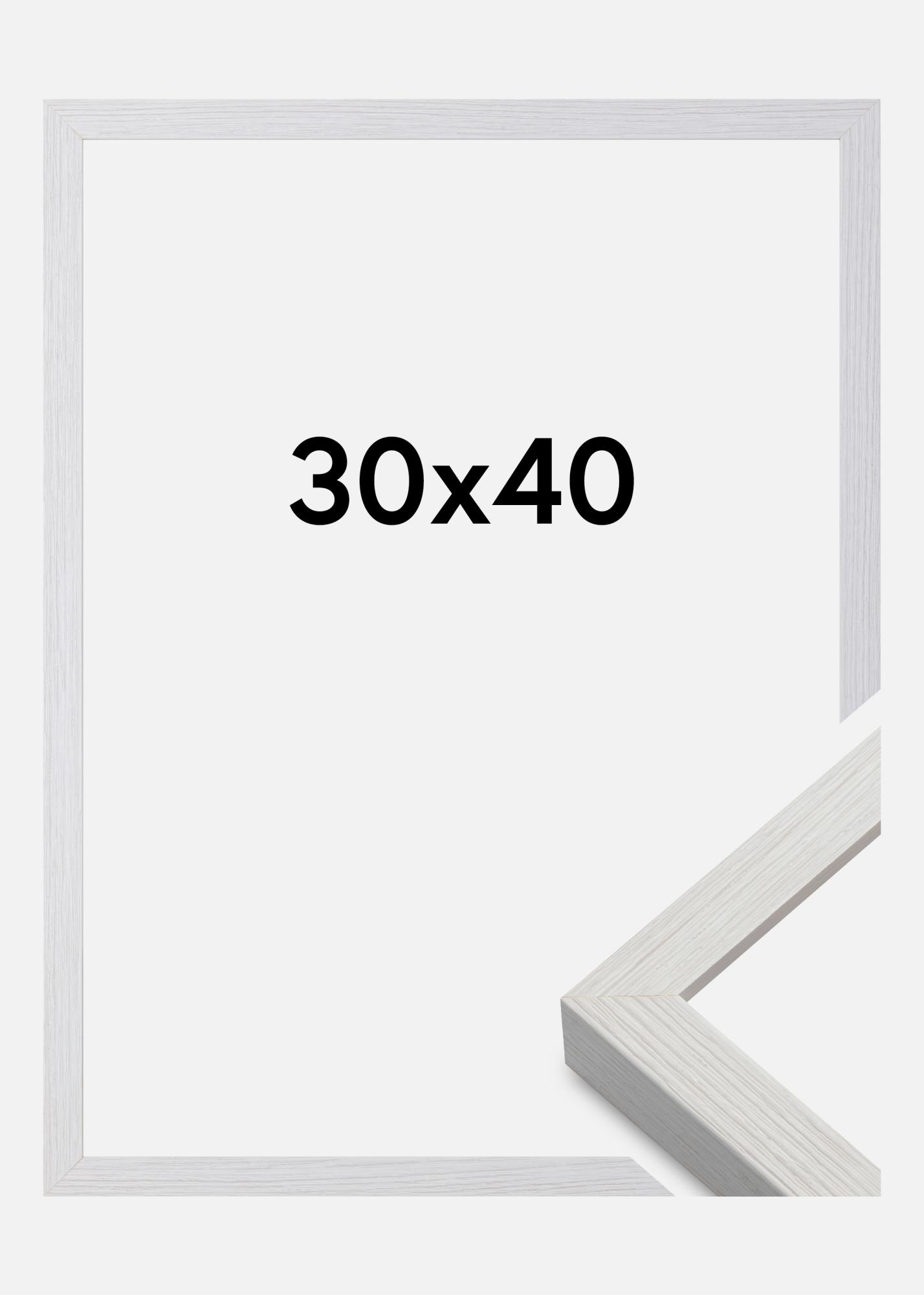 Stylish white wooden picture frame with high quality and a glazed feel, where the wood grain is brought out. The narrow moulding works just as well in a modern interior style as in a rustic interior, where the glazed-white colour works well. The picture frame is great to use for both posters, watercolours and photographs, and it is available in a variety of sizes. Combine the picture frame with several photographs in different formats and hang them together, to create a beautiful picture wall that will be an eye-catcher.