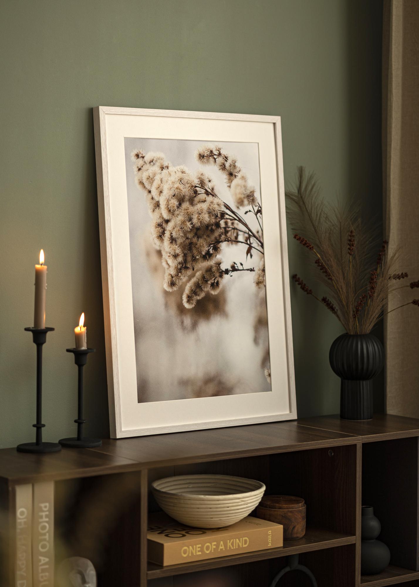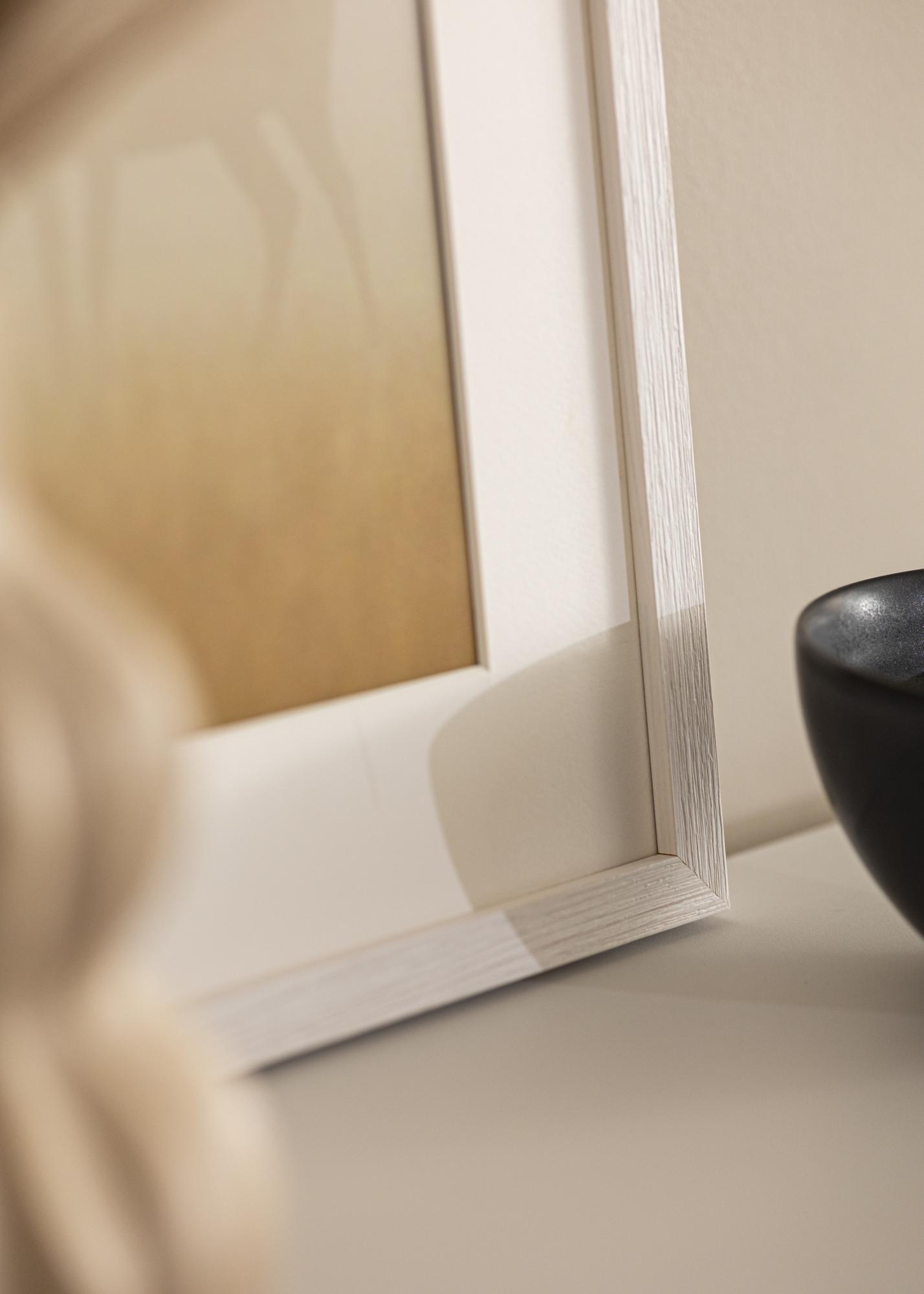 Stylish white wooden picture frame with high quality and a glazed feel, where the wood grain is brought out. The narrow moulding works just as well in a modern interior style as in a rustic interior, where the glazed-white colour works well. The picture frame is great to use for both posters, watercolours and photographs, and it is available in a variety of sizes. Combine the picture frame with several photographs in different formats and hang them together, to create a beautiful picture wall that will be an eye-catcher.