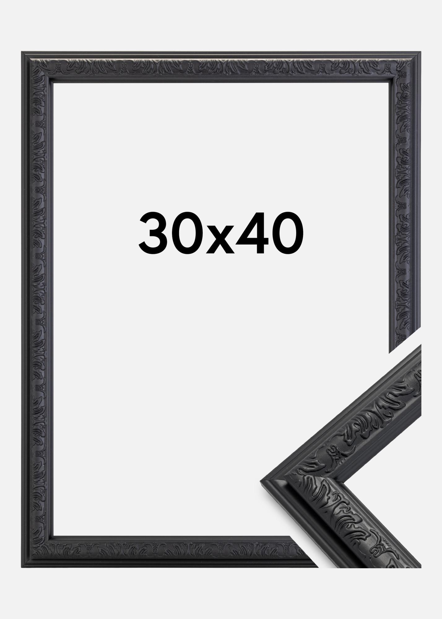 Start the frame selector »Nostalgia is a solid, black retro picture frame with beautiful embellishments. With its broad profile, Nostalgia Black is ideal for images you want to take extra care of.