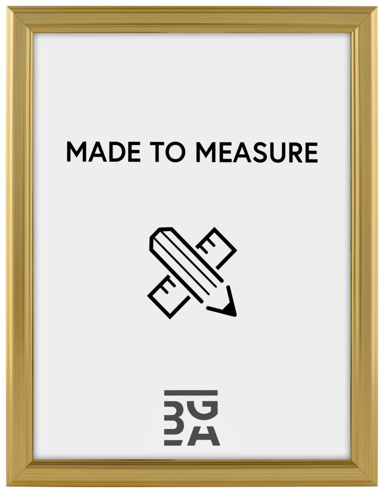 This custom-made frame has a 24 mm wide frame strip and a depth of 30 mm, providing a stable and robust framing. Made of pine, it offers both durability and aesthetics. The frame's golden color creates a warm and inviting atmosphere, making it ideal for highlighting your most beloved pictures or artworks.