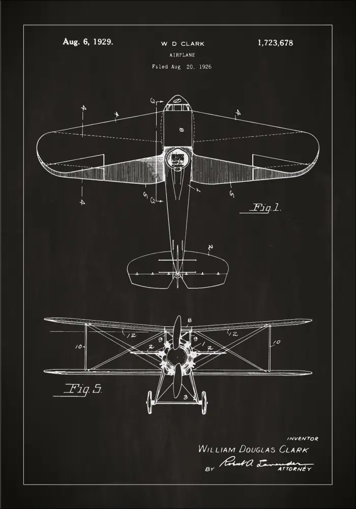 From the sky to your home, this patent poster depicts W D Clark's aircraft design, a pioneering creation that was granted patent number 1,723,678 on August 6, 1929. It is a true representation of the spirit of the time, when aviation technology made great strides. This exact reproduction of the original drawings is a tribute to that era of innovation.