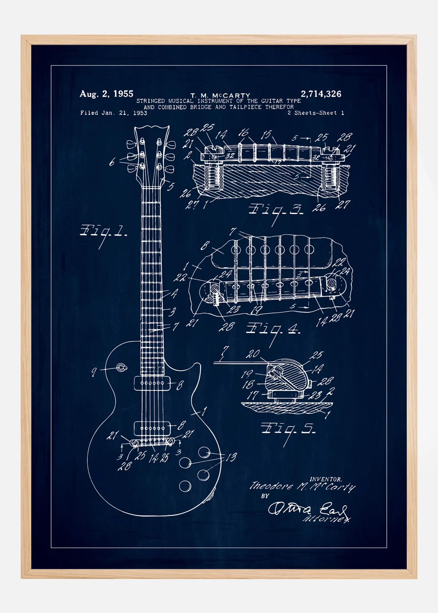 Patent drawing - Electric guitar I - Blue Poster (40x50 cm)