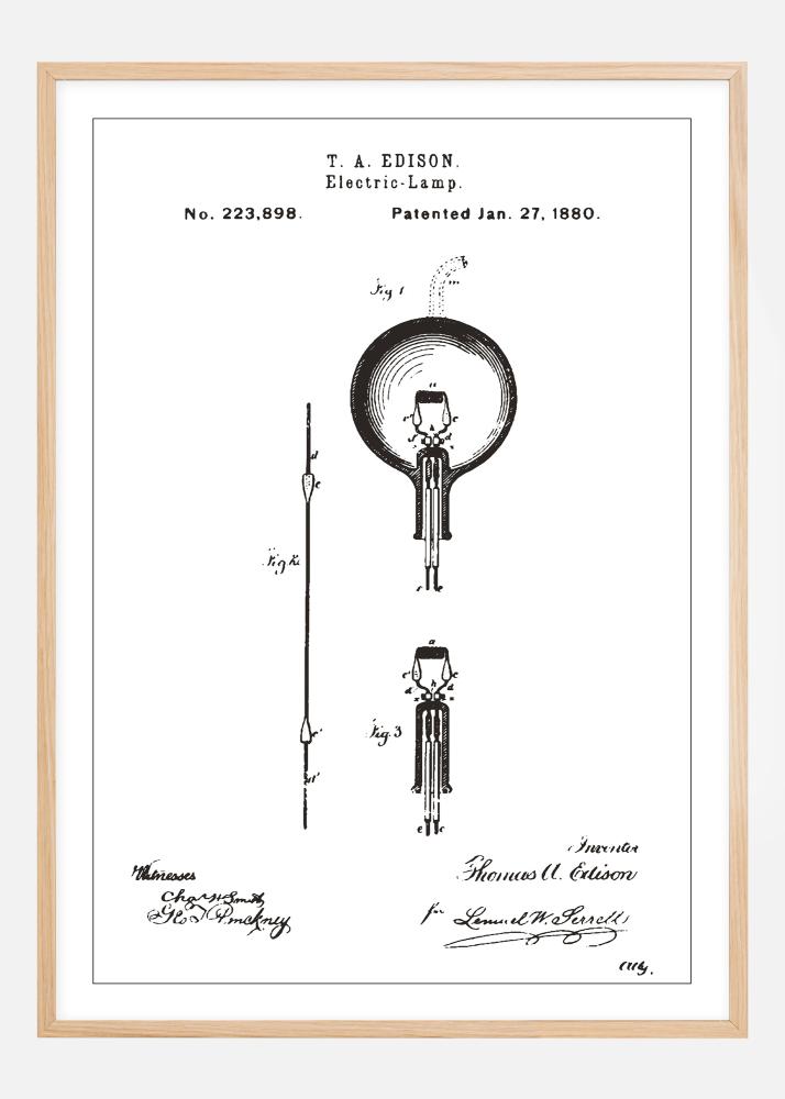 This timeless patent poster showcases Thomas A. Edison's groundbreaking electric lamp, which has illuminated our lives since it was granted patent number 223,898 on January 27, 1880. This stylish and educational poster is a tribute to one of the greatest inventions of all time and provides a unique insight into technological innovation. The details in the drawing reveal the meticulous process behind the invention of the light bulb, a product that is central to our daily lives. This poster is a fantastic conversation starter and a source of inspiration, perfect for anyone who appreciates historical technology and design.