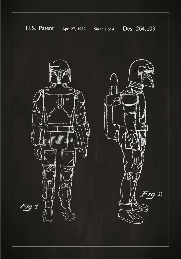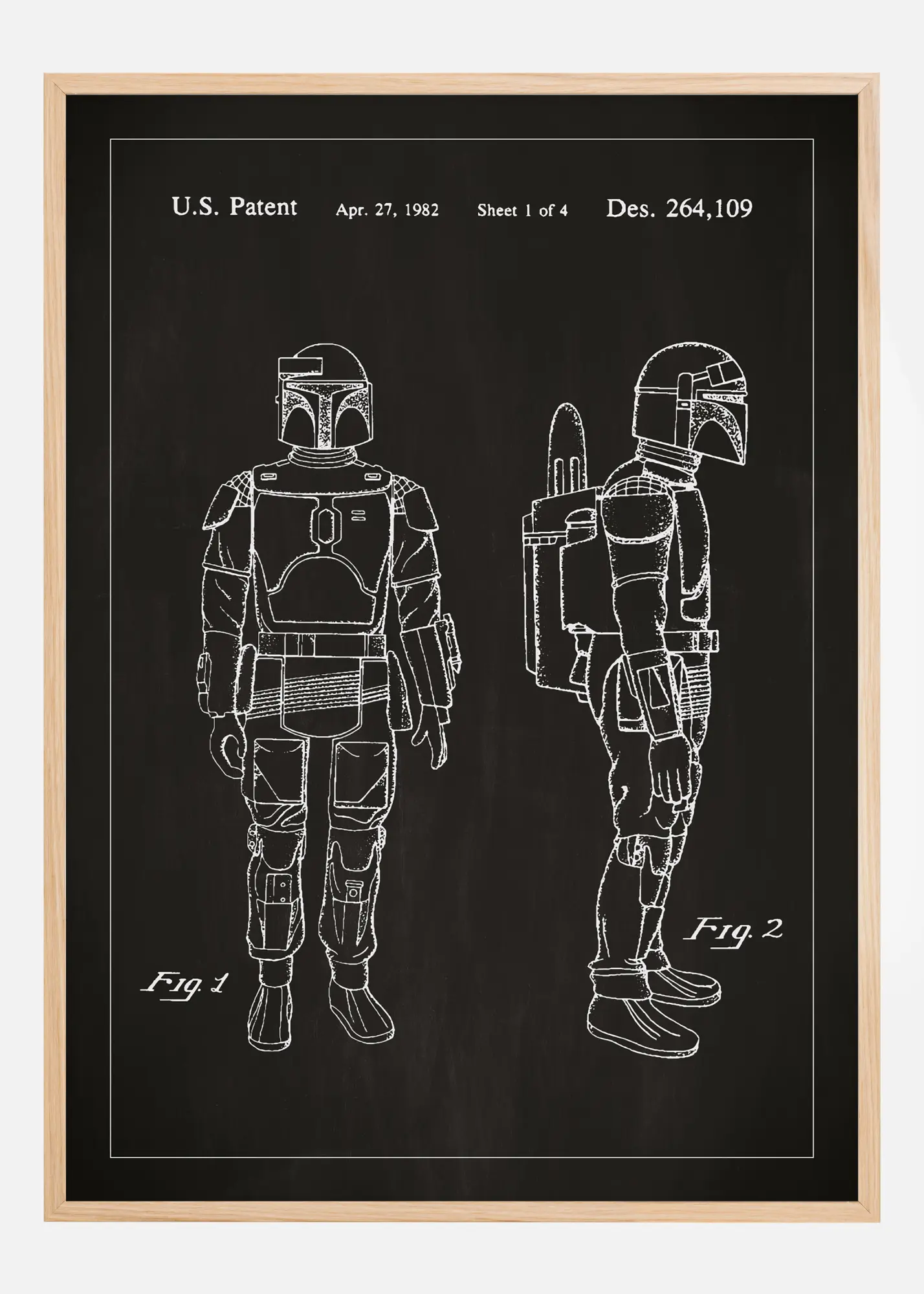 Discover the nostalgic charm and innovative design with our exclusive patent poster depicting a classic armor outfit of Boba Fett from Star Wars. This detailed patent drawing, originally submitted to the US Patent Office, represents a fascinating part of design history. Perfect for technology enthusiasts and collectors, this patent poster serves as a stylish reminder of humanity's creative endeavor and technological progress.