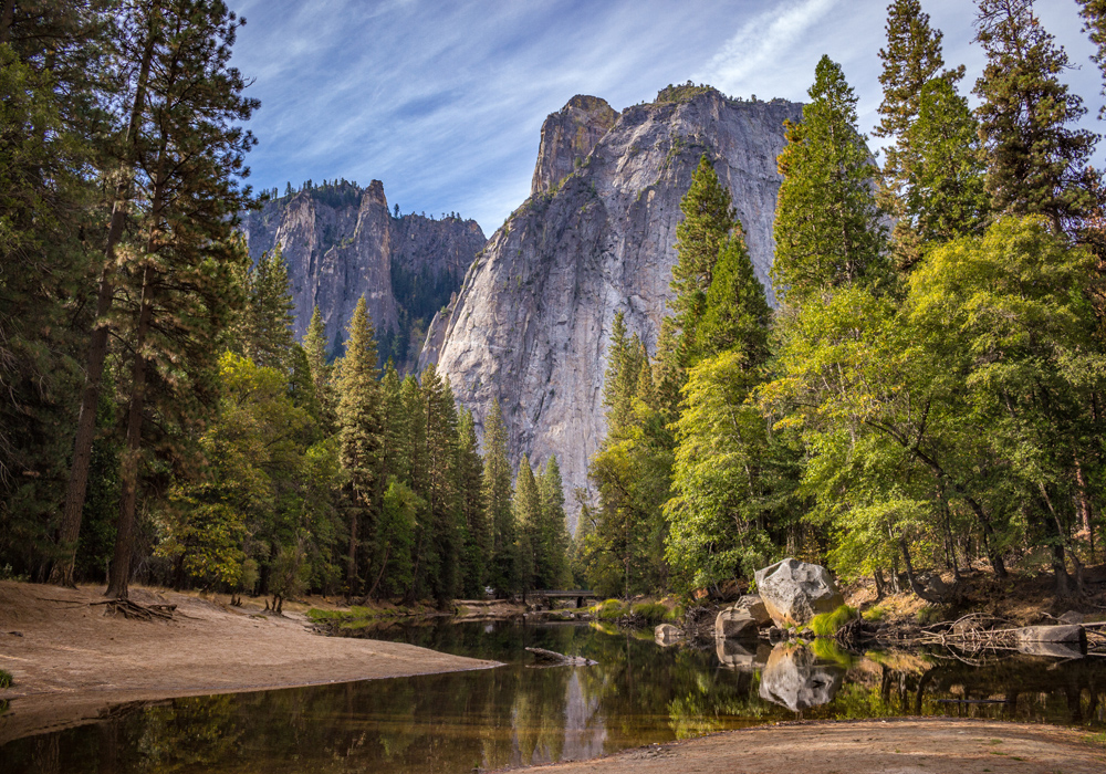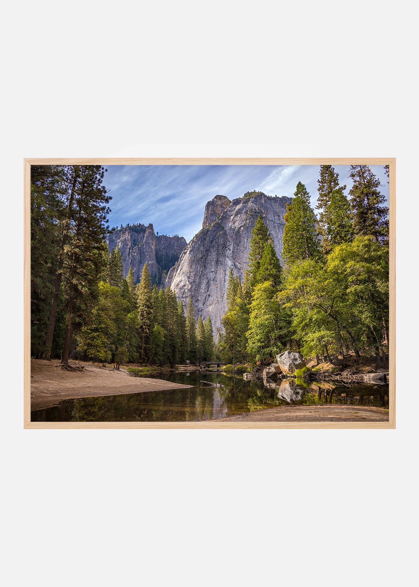 Print featuring high cliffs and a tranquil forest reflecting in a peaceful water surface. A speaking silence that creates a serene landscape. Together with a frame made of natural materials, the painting fits into all types of interiors and colour schemes. Hang the photograph along with other nature pictures or choose a larger size for an impactful effect as a solitary painting.