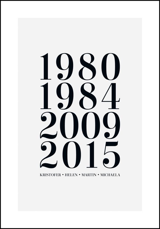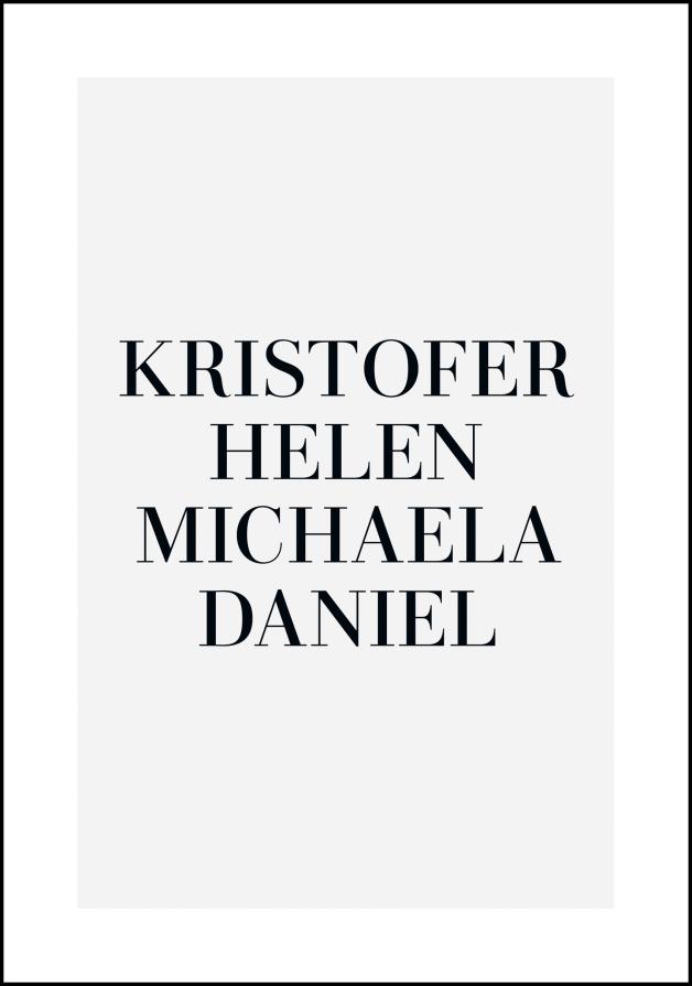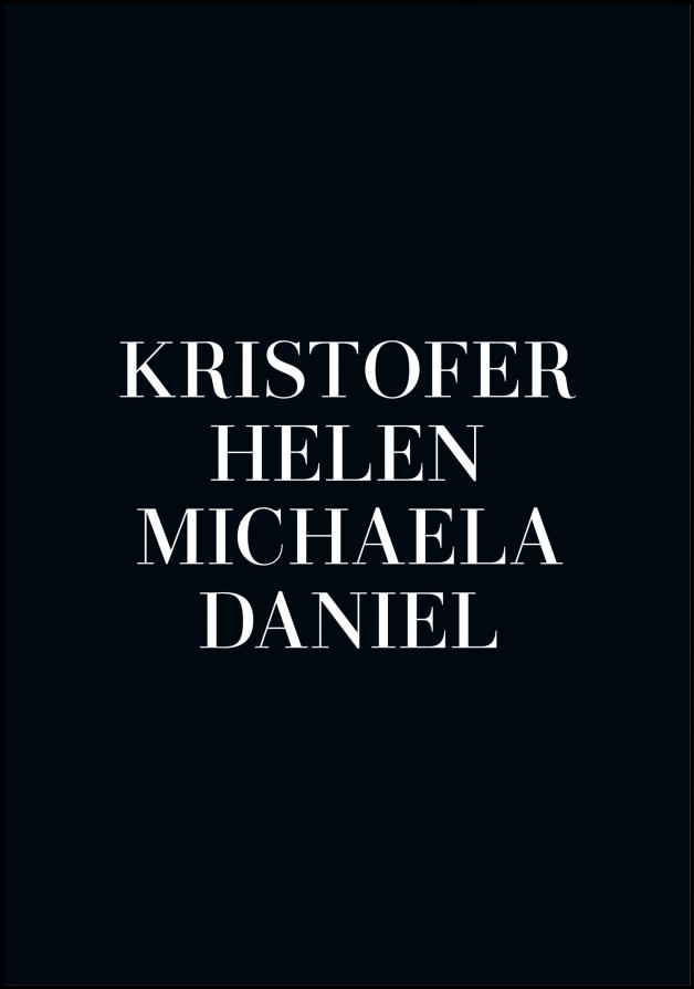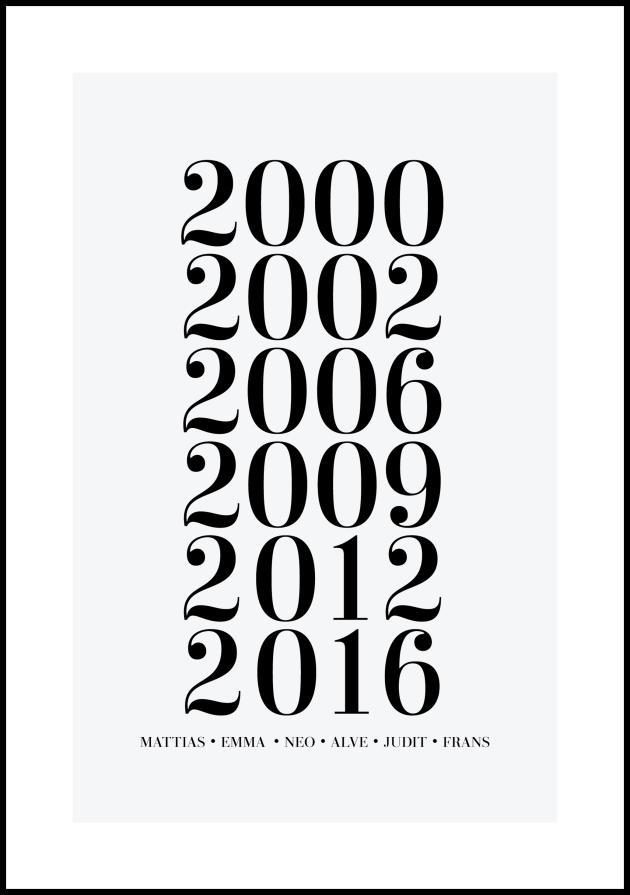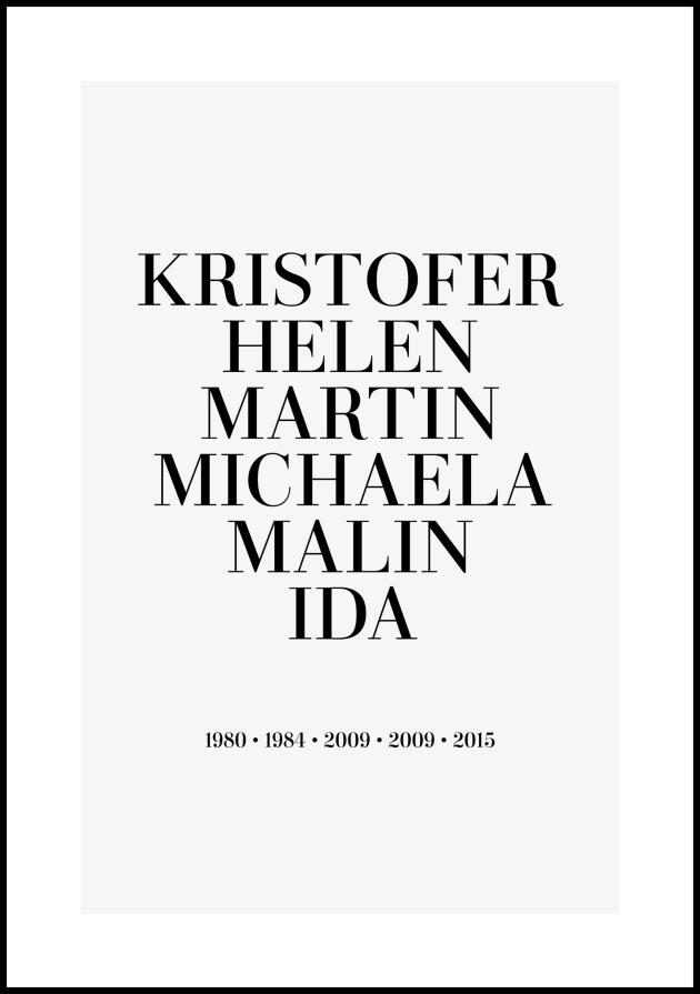 First and foremost, it's the text itself that gives the most personal touch, and which of course makes up the main part of the whole poster. Then of course the actual picture frame, which we also offer in many different colours. It's not difficult to get everything you want without needing to pick one or the other.