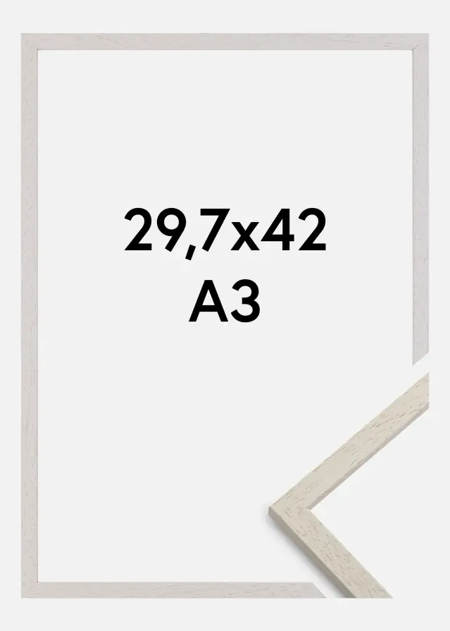 The dimensions specified for the frames indicate how large images can fit in them, i.e. the image dimension. This is also the measure you must fill in when you order a photo frame according to your own measurements. To find out the total size, just add the photo size with the rail width x 2. For example, if you have a photo frame with the photo size 40x60 cm, and the rail width is 1.3 cm, take 40 + 1.3 + 1.3 = 42.6 cm to calculate the width. In the same way, calculate the height of the photo frame. Some of our most popular frame sizes are 70x100, 60x80, A2, A3, and 50x70.