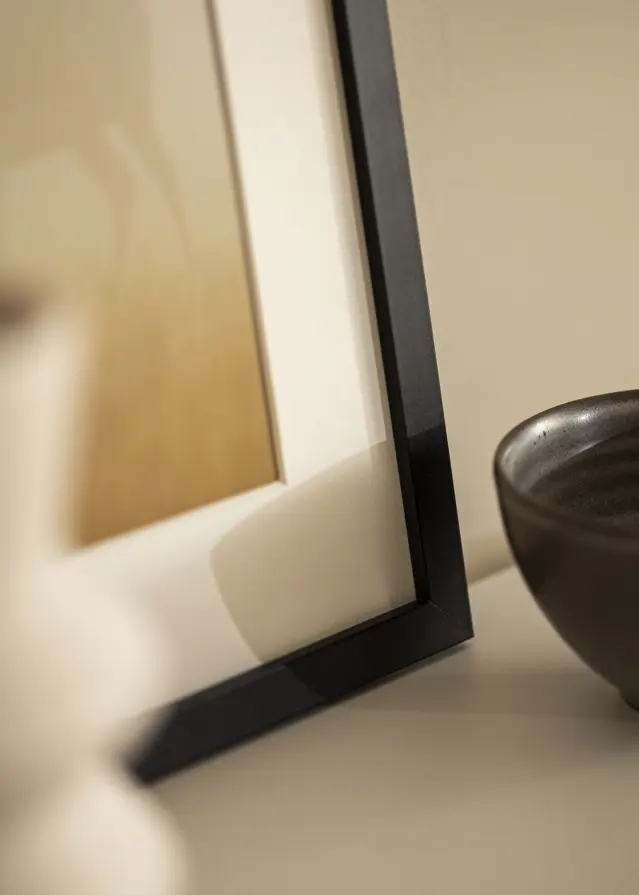 Stylish frame in matt black with a narrow frame profile of 15 mm