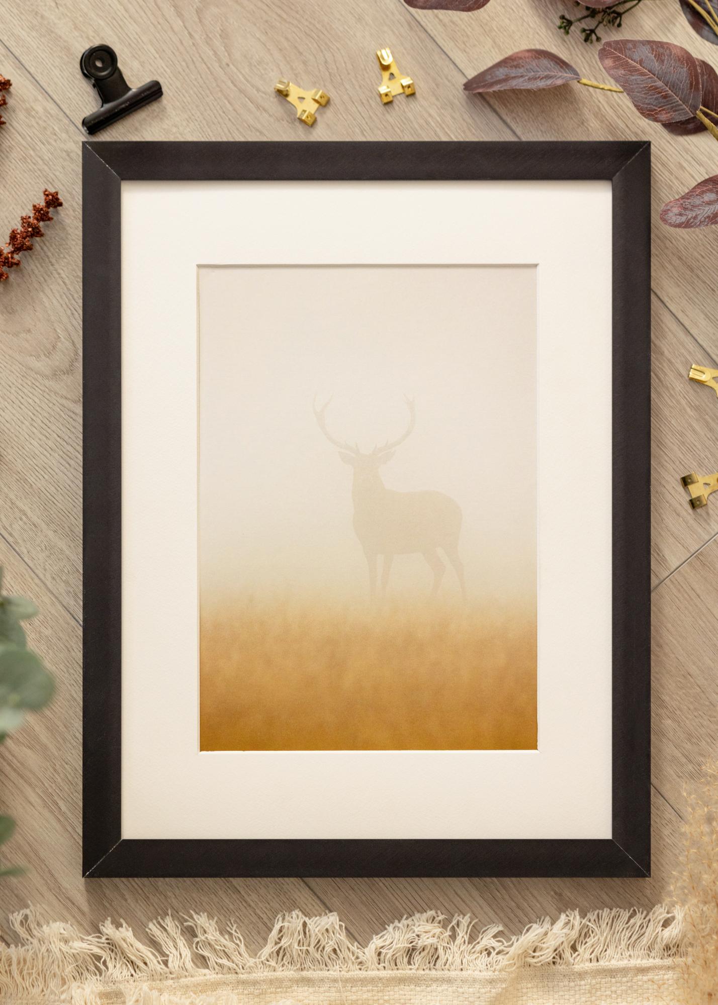 A stylish black aluminium frame that looks particularly good when framing photographs with a lot of blackness and depth in them. The minimalistic frame goes well in homes decorated in a modern style with graphic prints and a colour scheme with lots of black in it. Complete with a nice mount to highlight the picture and hang the finished piece of wall art with similar photographs in the same kind of frames to create an image series.