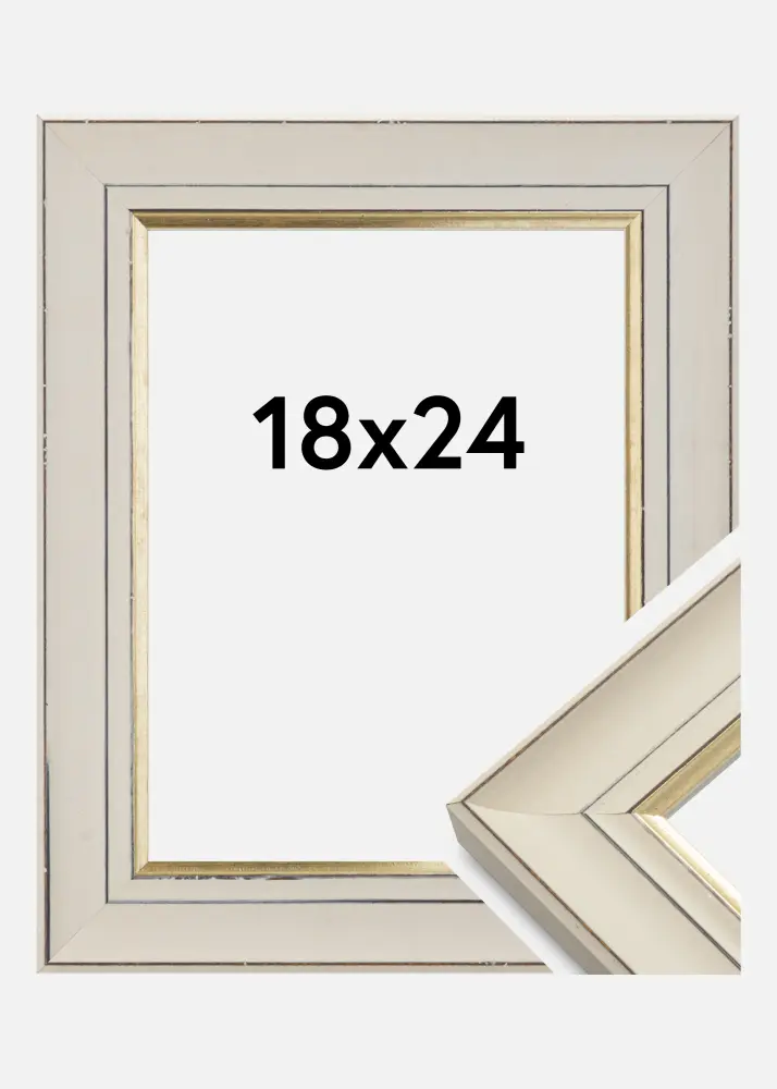 A frame in classic style with an exciting retro feel. The white frame has a time-worn look and a beautiful gold edge close to the picture. With its understated design and colour scheme, this is a frame that looks great in almost all spaces and with all types of pictures.