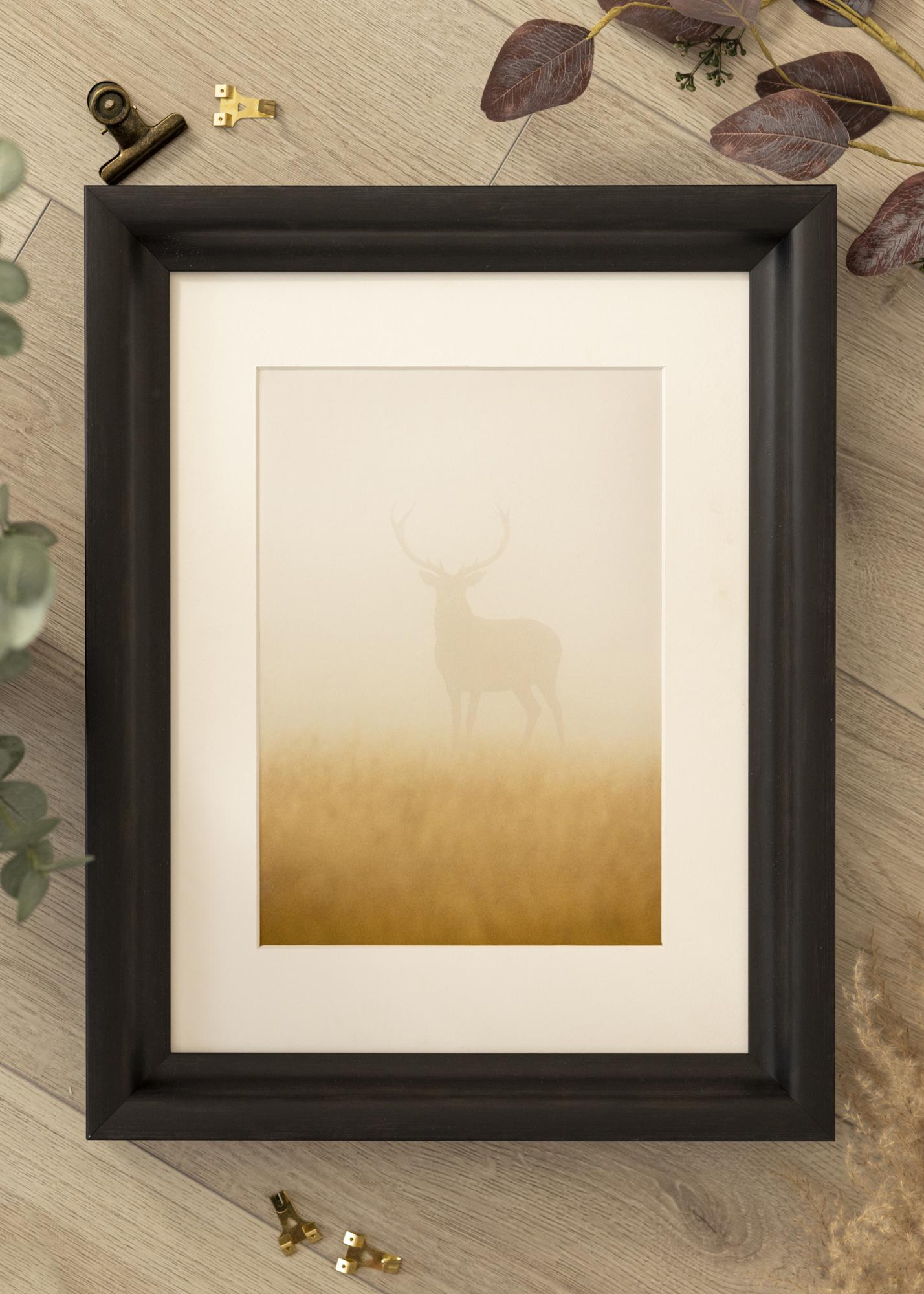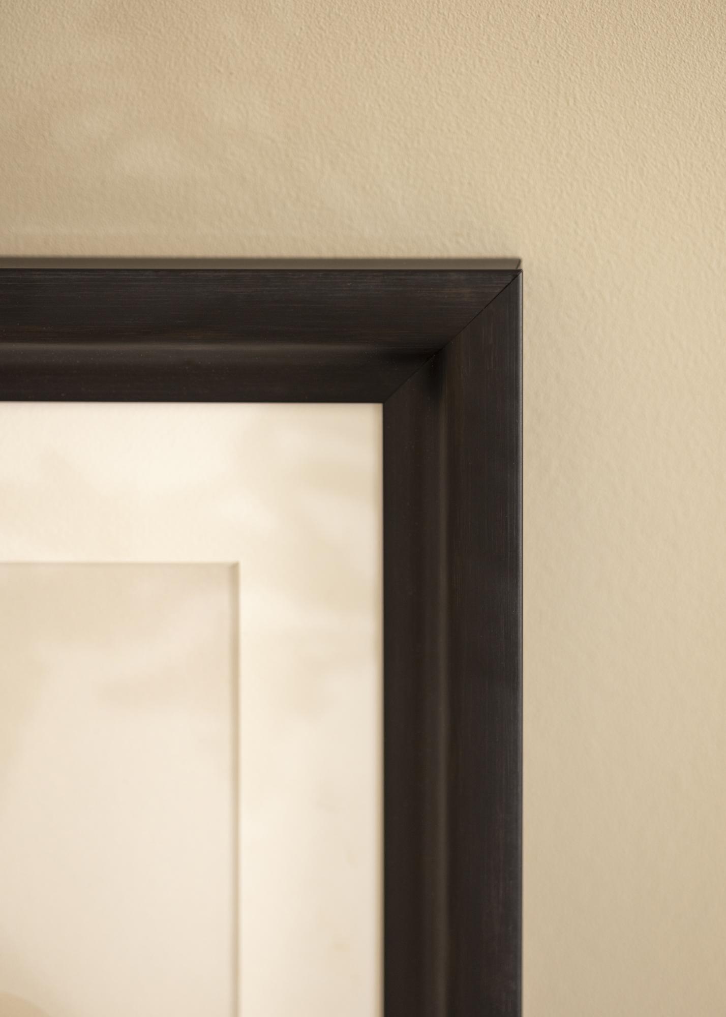 A traditional photo frame in a dark black-brown colour that's closer to black than brown. An excellent choice when you're looking for a custom-made picture frame in a dark colour and in which the texture of the wood is visible.