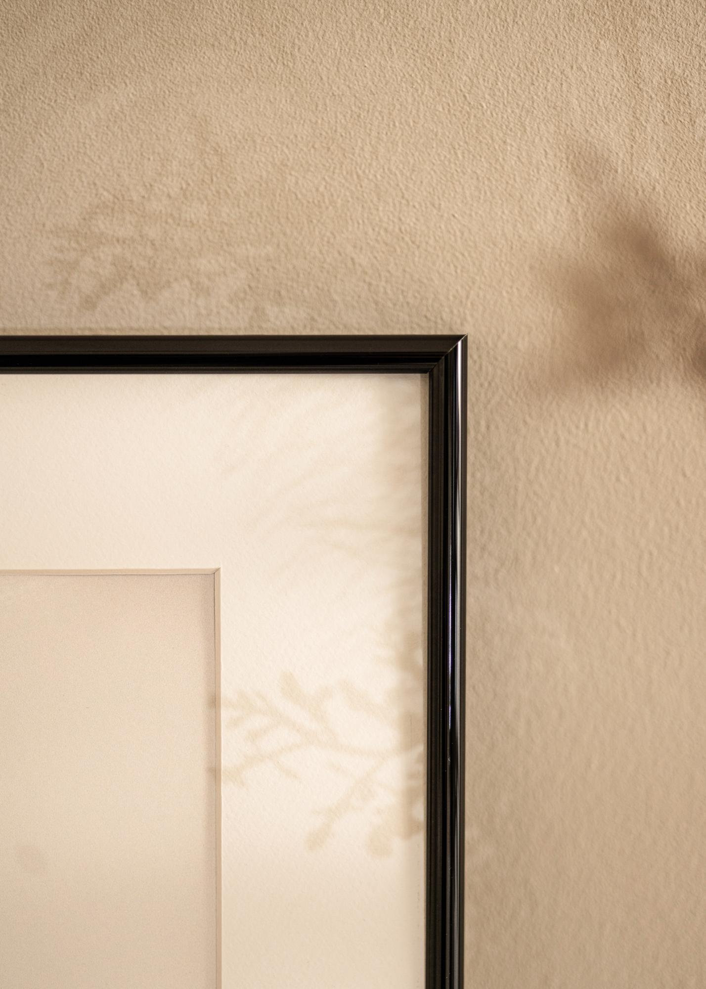 A modern, high-gloss black picture frame with brushed sides that's 26 mm deep. The picture frame's deep form makes your pictures stand off of the wall and creates a gorgeous 3D effect. Perfect when you're looking for a simple black picture frame that gives your photos a touch of elegance.
