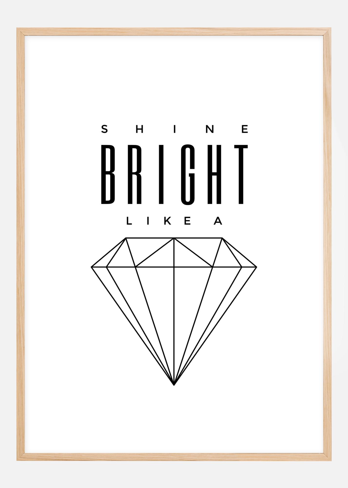 Remind yourself to always continue to sparkle like a diamond, even when you feel dull inside. You don't have to be a fan of Rihanna to love this stylish poster. The poster features a sleek, black and white design with a graphic diamond at the centre. Above the diamond, the text "Shine bright like a" is printed in elegant black letters. Since the poster is available in a variety of sizes, you can easily find one that fits your wall. Feel free to create a luxurious whole by complementing with a black or gold-coloured frame from our wide range.