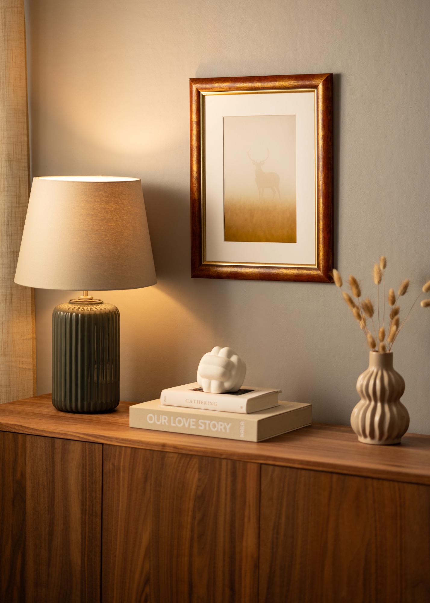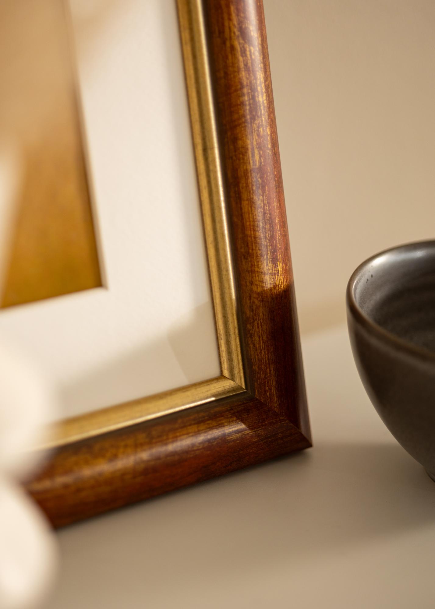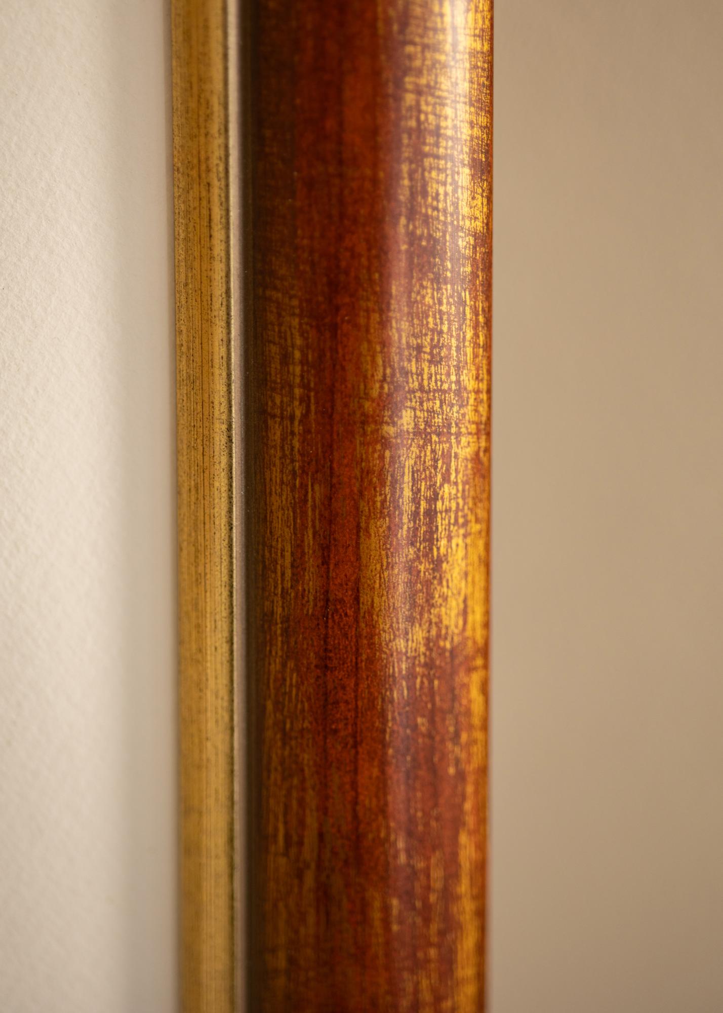 A timeless wooden frame made in Finland with a beautiful red wooden surface and a gold edge close to the picture. Gives your pictures a calming look. The frame has a wide 41 mm form and is extra deep at 19 mm.