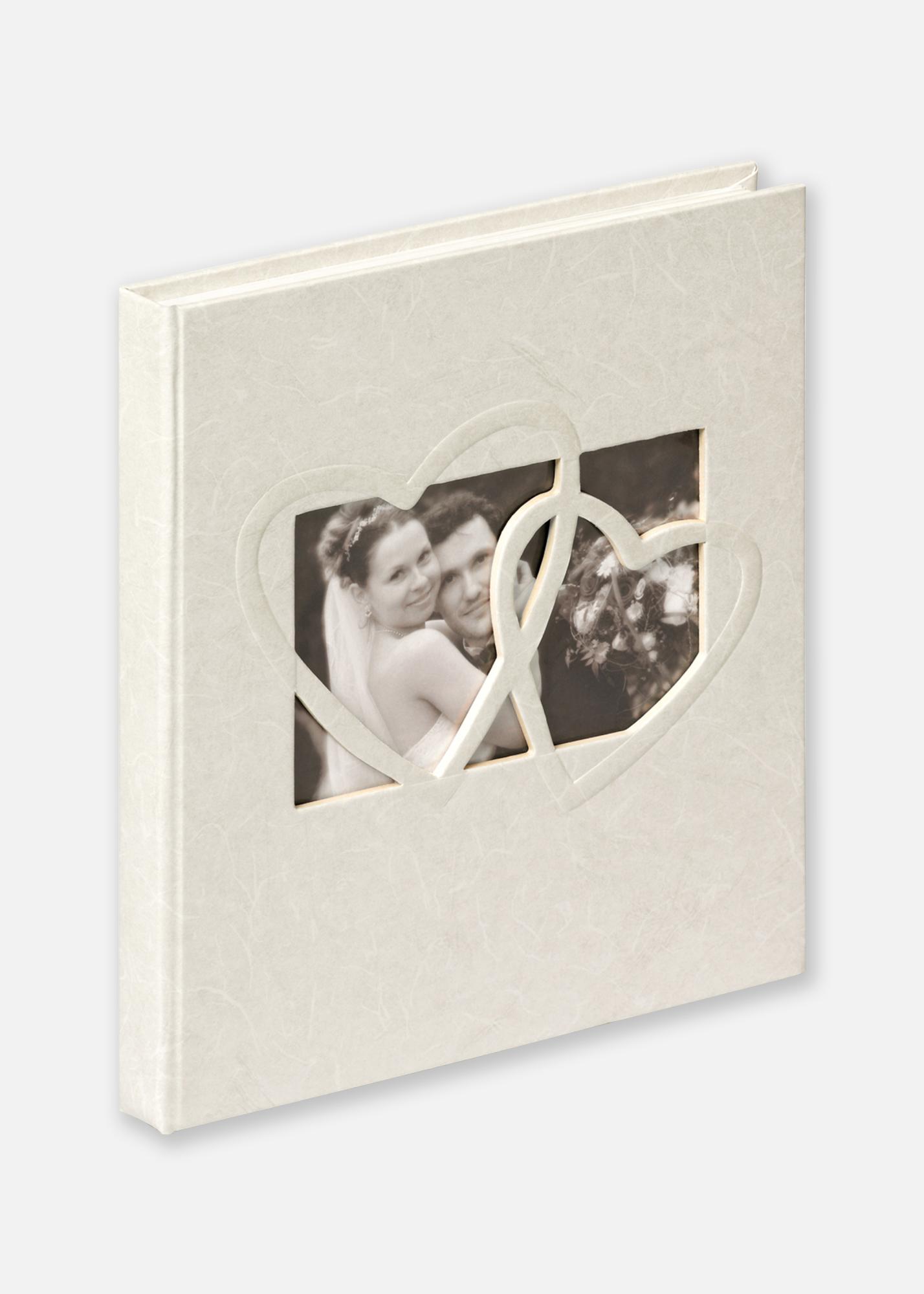 A romantic guestbook for weddings beautifully bound in linen and with embossed heart-shaped patterns and space for your own picture on the front.