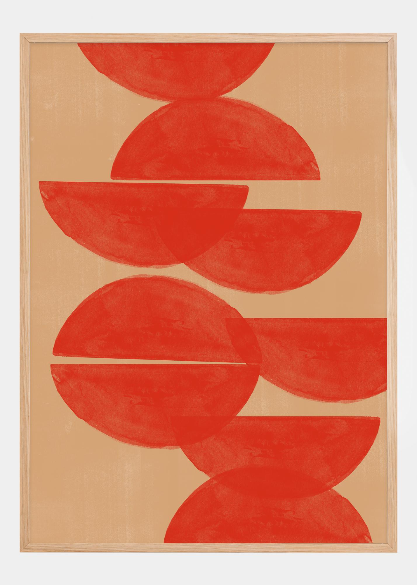 This vibrant and captivating poster makes a bold statement with its overlapping semi-circles in a deep, red-orange palette. The motif, geometric in nature, repeats semi-circles in an almost rhythmic order, creating a sense of movement and dynamism against the soothing beige background. It is a print that offers a contemporary touch and energetic focus to any room it occupies.