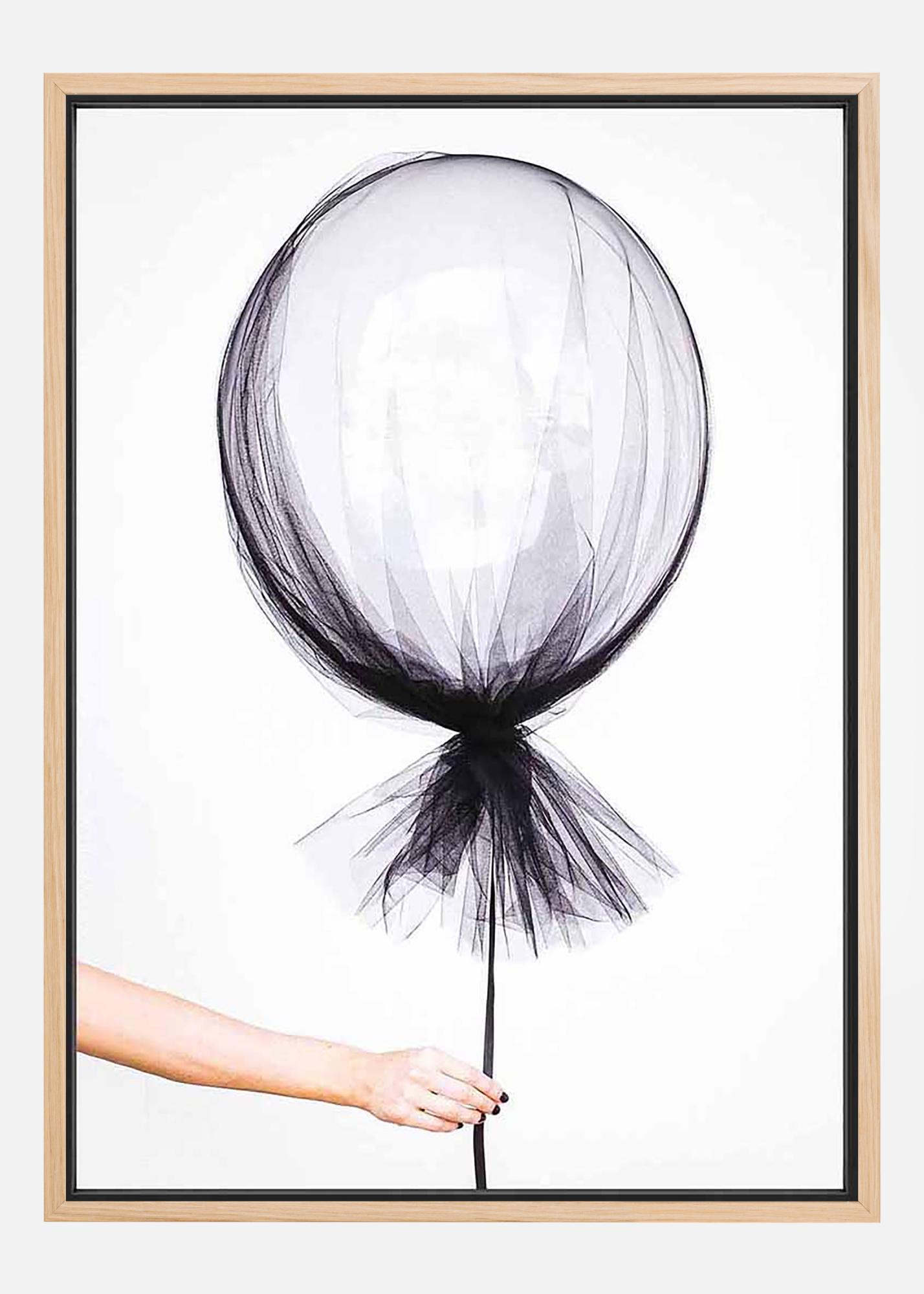 Sleek photographic art of a hand holding a floating balloon wrapped in thin transparent fabric. A charming poster that breathes a delightful mix of light-hearted playfulness and the delicate and fragile. Fits just as well in a child's room as in the modern home.