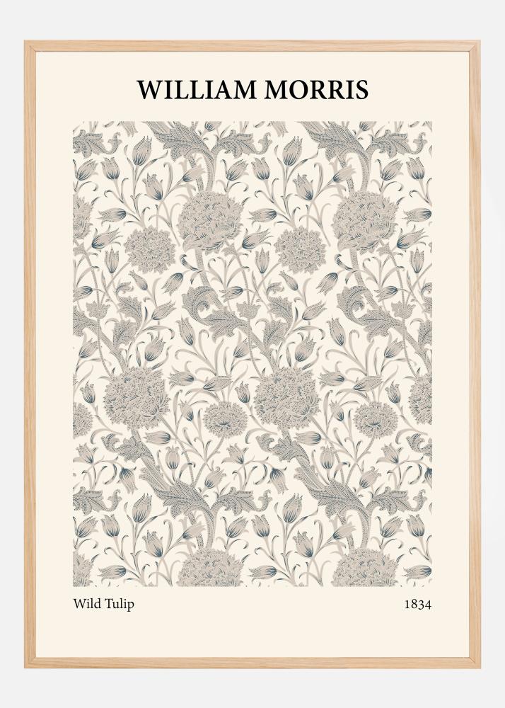 This William Morris poster, titled "Wild Tulip," is an elegant interpretation of wildflowers, composed with great skill and care. The pattern is a labyrinth of tulips and leaves, executed in subtle shades of beige and gray against a warm, cream-colored background, making it an ideal piece for those looking to create a relaxed and sophisticated environment. The detail in the illustrations demonstrates Morris' masterful hand and his ability to transform everyday scenes into art.