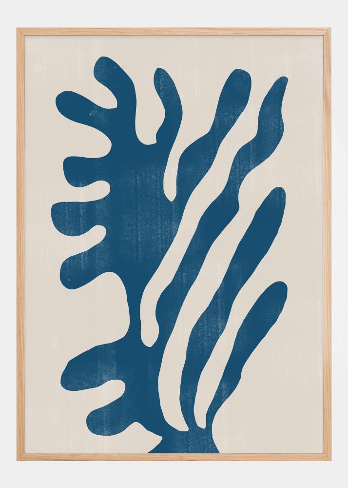 This bold and vibrant poster captures the essence of abstract foliage with its sweeping blue lines against a creamy background. The stylized motif resembles underwater vegetation or feathers dancing in the wind, giving a sense of freedom and nature. This artwork combines organic beauty with a modern graphic design aesthetic.