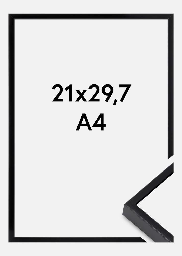 Discover the elegance and modern design with our black, glossy aluminum frame in the size of 21x29.7 cm (A4). This stylish photo frame is perfect for showcasing your favorite pictures or artwork with a discreet touch. The slim frame border, only 7.8 mm wide, gives an almost floating impression of your motif.