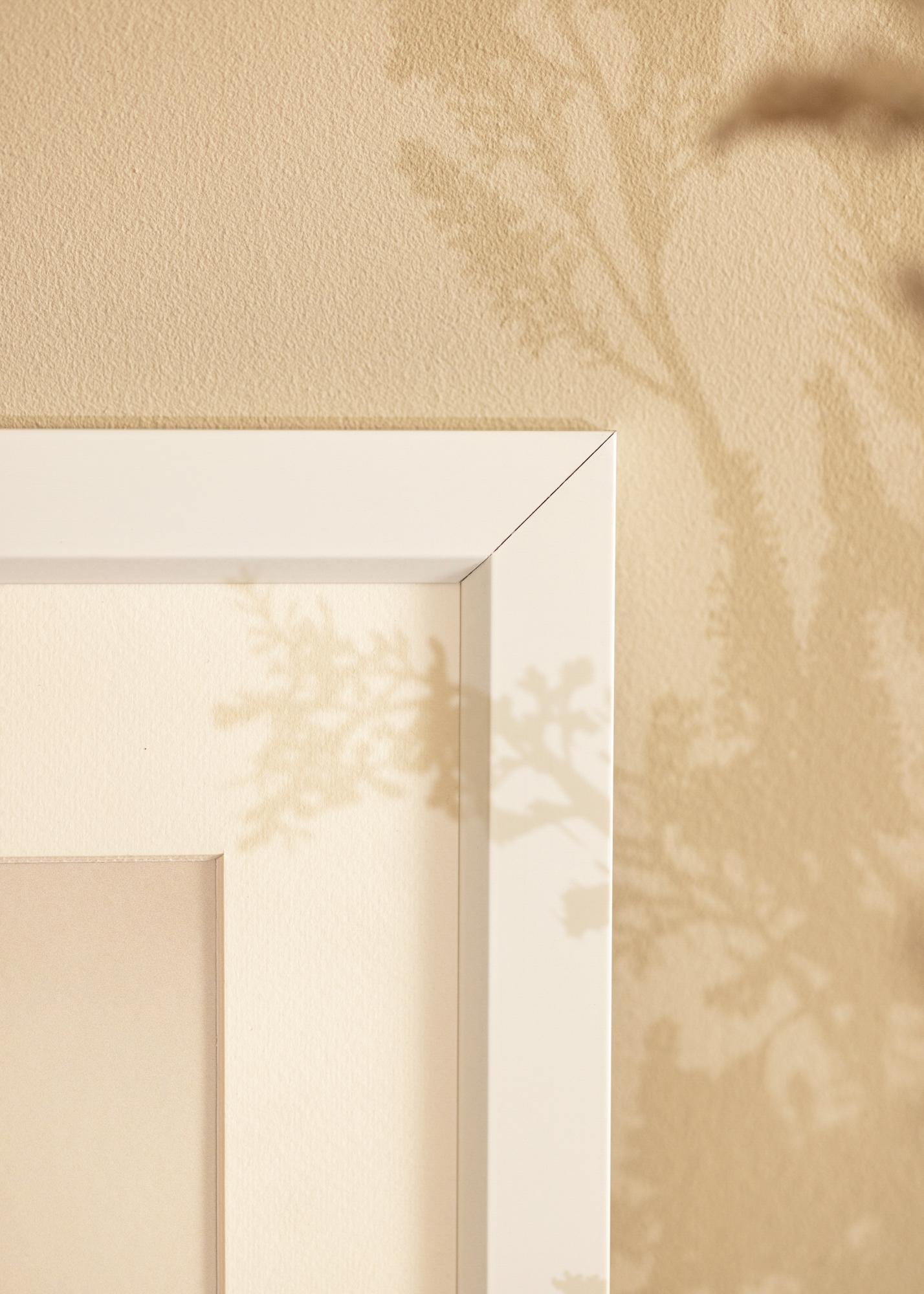 Stylish white aluminium frame with a bevelled inner edge that gives an elegant look to the picture and looks good in all types of interiors. A white frame matches all types of images as it allows the focus to be entirely on the subject, and hence makes it stand out. White frames are most effective with colourful or graphic pictures that contrast with the white. Why not combine several kinds of white frames with different pictures of the same theme for an eye-catching picture wall in the living room?
