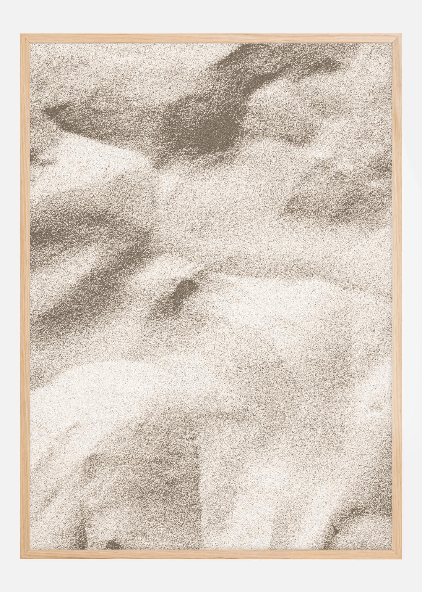 This stripped-down and meditative poster captures the natural texture and soft contours of sand dunes. The monochrome photo plays on light and shadow to highlight the sensual and ephemeral forms created by the wind's movements across the sand's surface. The soft gradients from light to dark create an almost hypnotic effect, inviting reflection and stillness.