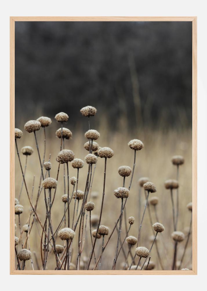 A simple poster of a field with the heads of wildflowers. These wildflower stems are the foreground focus, the rest of the field fades into the distance keeping your eye on these flower heads. Match the beige and cream colours of this print with a soft blue wall for a contrasting look.