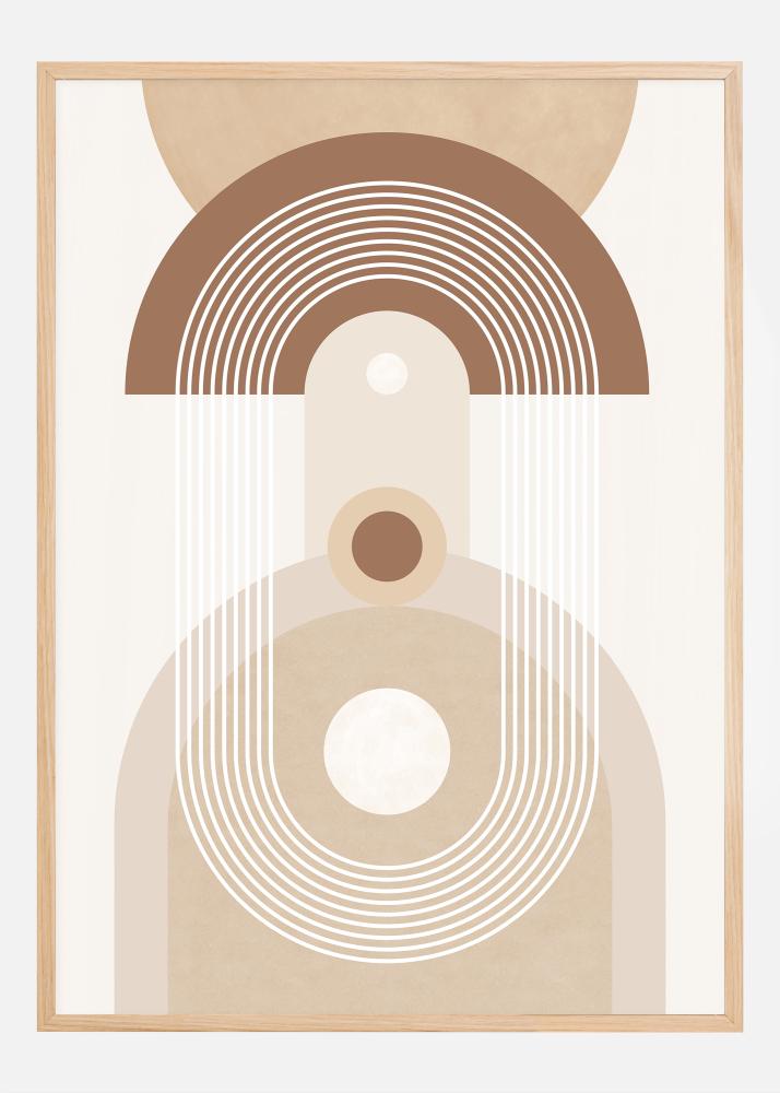 This sophisticated and stylish poster continues our curated collection of mid-century modern art. The abstract composition, which plays with both form and negative space, uses a limited color spectrum of beige and brown tones to create a sense of depth and movement. With its geometric shapes and overlapping lines, this poster offers a subtle complexity that can be appreciated from all angles.