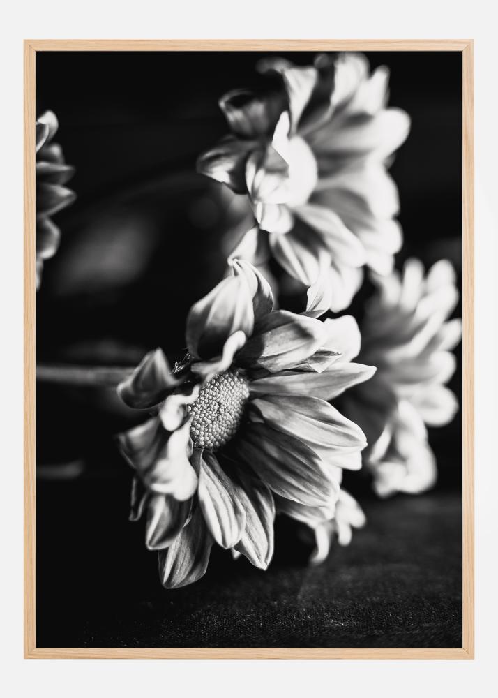 This poster depicts a floral arrangement in black and white, where shadows and light work together to highlight the delicate contours and texture of each petal. The image's focus on the contrast between dark and light captures the beauty of the flowers in a way that provides a new appreciation for their form and structure. This poster is a sophisticated and artistic interpretation of nature's wonders, perfect for creating a sense of calm and beauty in any space.