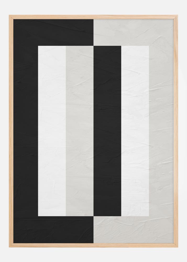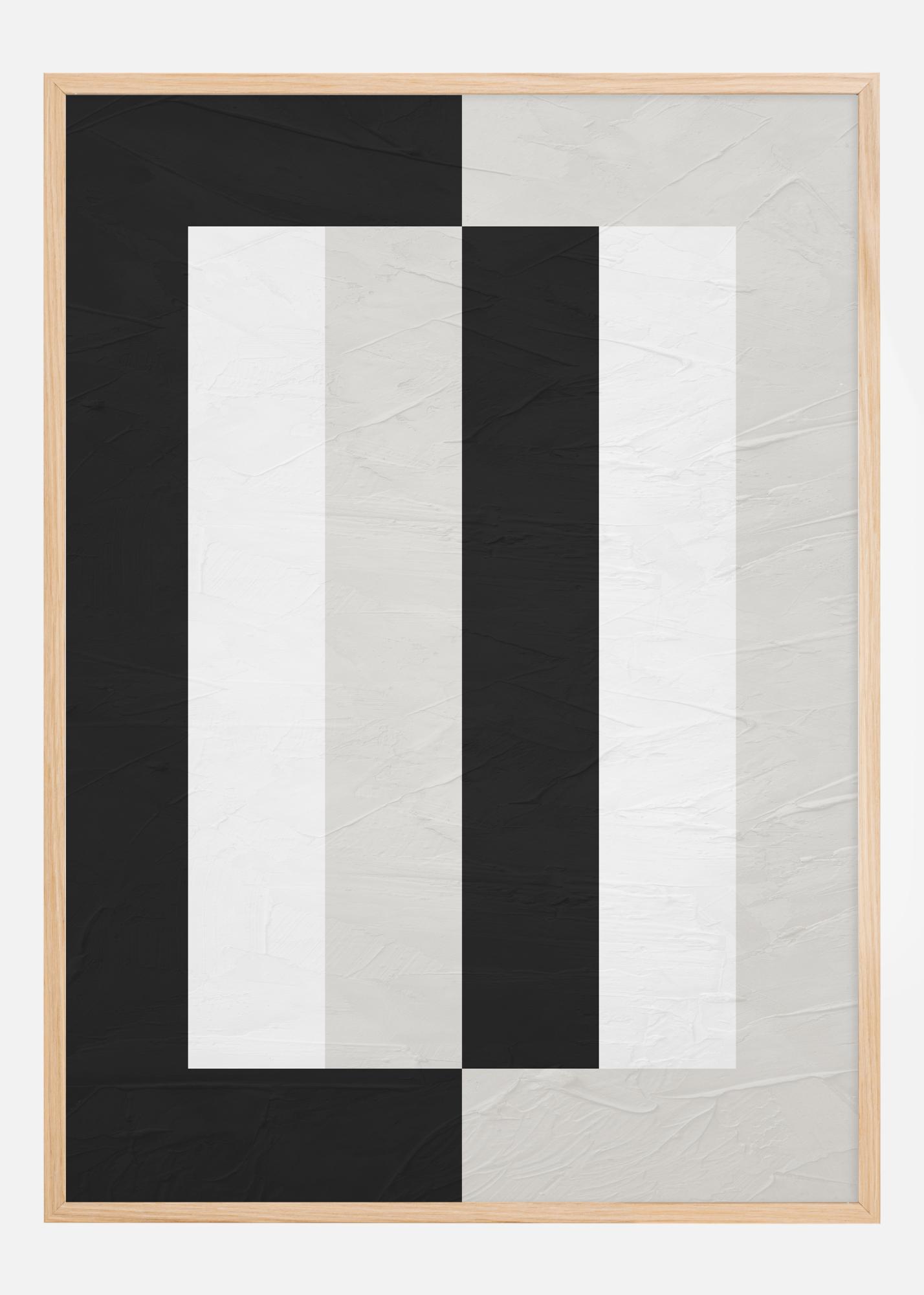 This sophisticated poster presents a bold and graphic composition that immediately captures the viewer's attention. The contrasting combination of black and white forms a series of vertical lines and blocks, creating an optical illusion of depth and movement. This poster is ideal for the modern decorator seeking a statement piece of art that conveys a sense of elegance and contemporary design. The restrained color palette makes it easy to integrate this image into various rooms and environments.