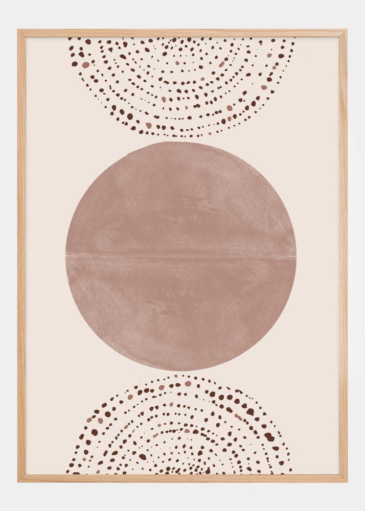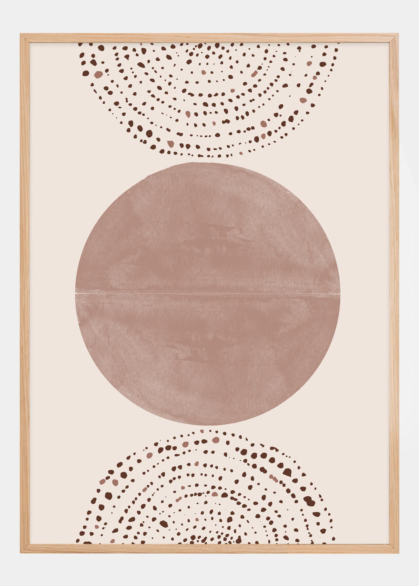 This sophisticated and calming poster highlights a large, soft terracotta-colored circle as the center in a composition of fine, scattered dots forming floating semicircles above and below. This motif is inspired by bohemian design and provides a relaxed, earthy feel while adding a modern touch to the room it adorns.