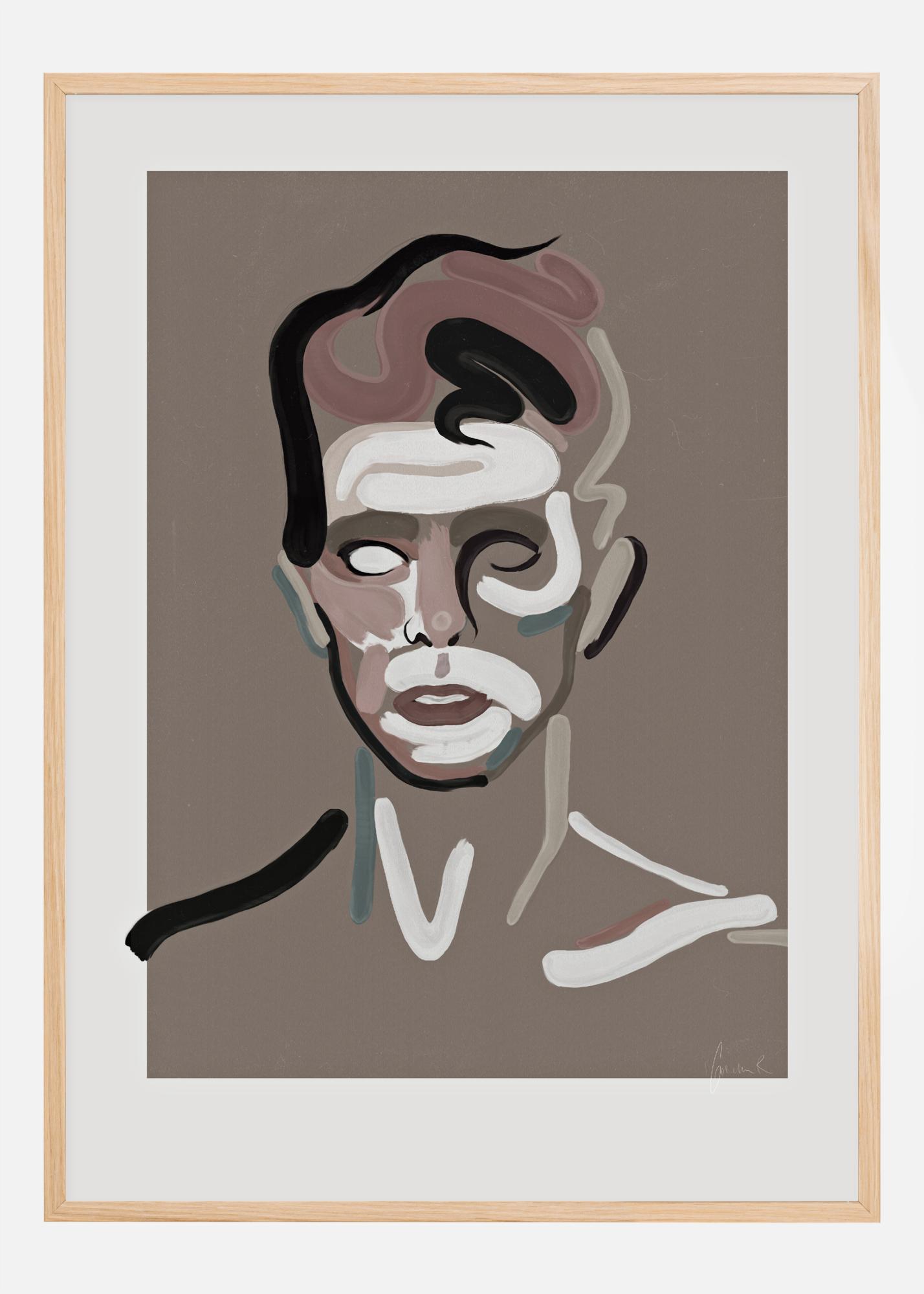 An abstract portrait poster of David Bowie made with thick brush strokes. White, black, blue and pink are the colours used to create a powerful portrait of David Bowie. Bold strokes outline his face as he stares out for a compelling, abstract piece perfect for adding vibrancy to a plain wall at home.