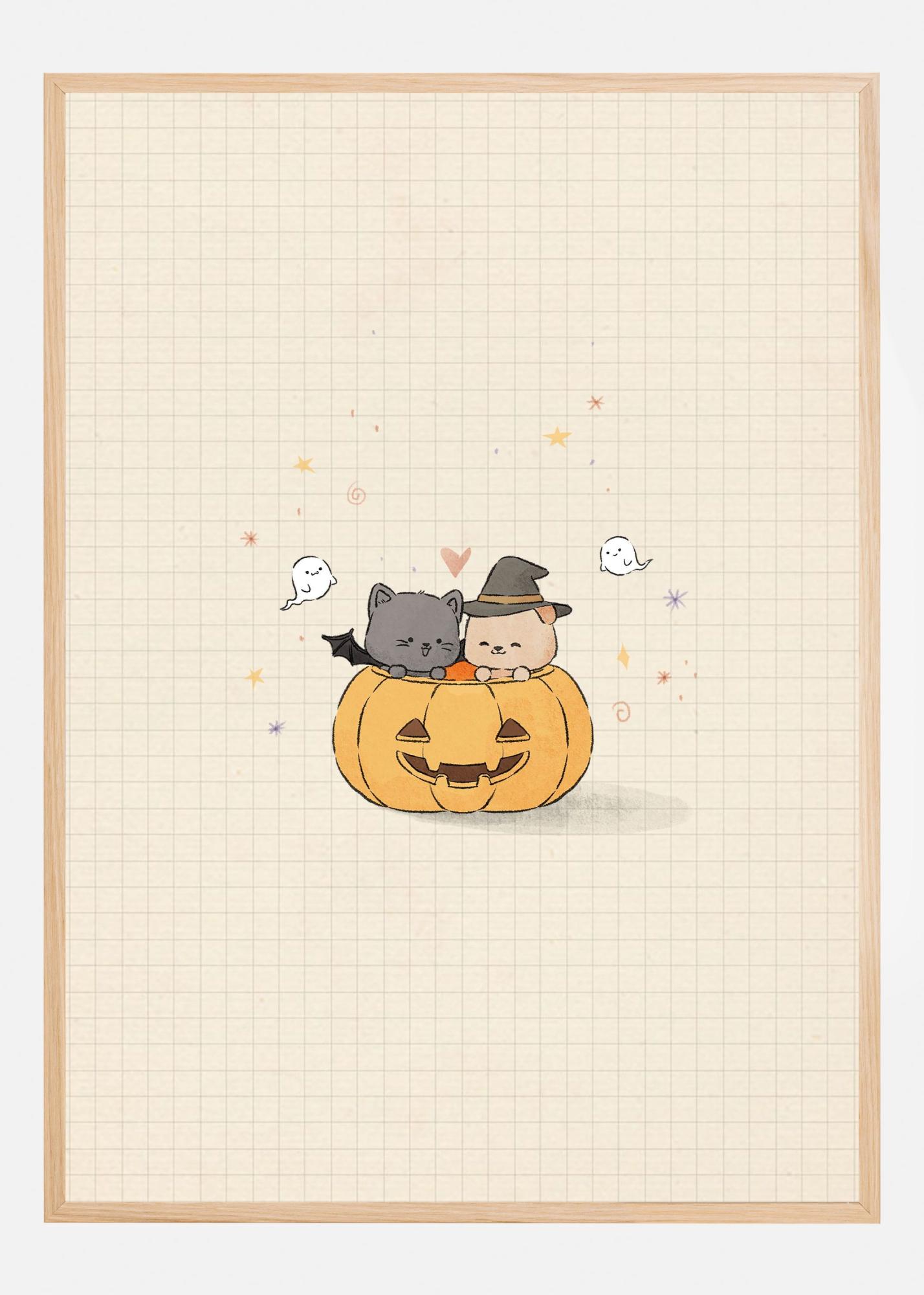 Cat and Dog In Halloween Poster