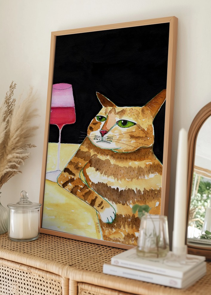 Cat Friday Night Drinks Wine Funny Cat Humour Poster