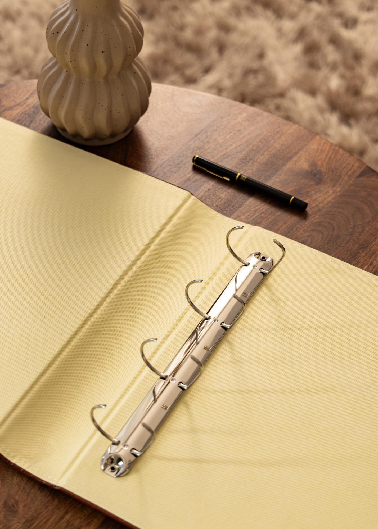 Chesterfield Giant Ring Binder is an elegant and spacious album in a classic design, perfect for collecting and preserving your most valuable memories. The brown binder has a stylish faux leather surface with embossed details and silver-colored lines that give a timeless and sophisticated feel.