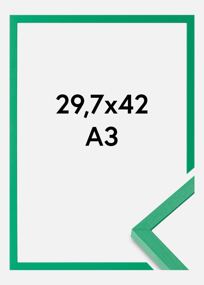 Add a splash of color to your walls with this stylish 29.7x42 cm (A3) picture frame in a vibrant green hue. The slim frame, only 13.5 mm wide, provides an elegant framing without taking away from your artwork or photo. With a depth of 22.5 mm, this frame creates a distinct profile that adds depth and character to your wall decoration.