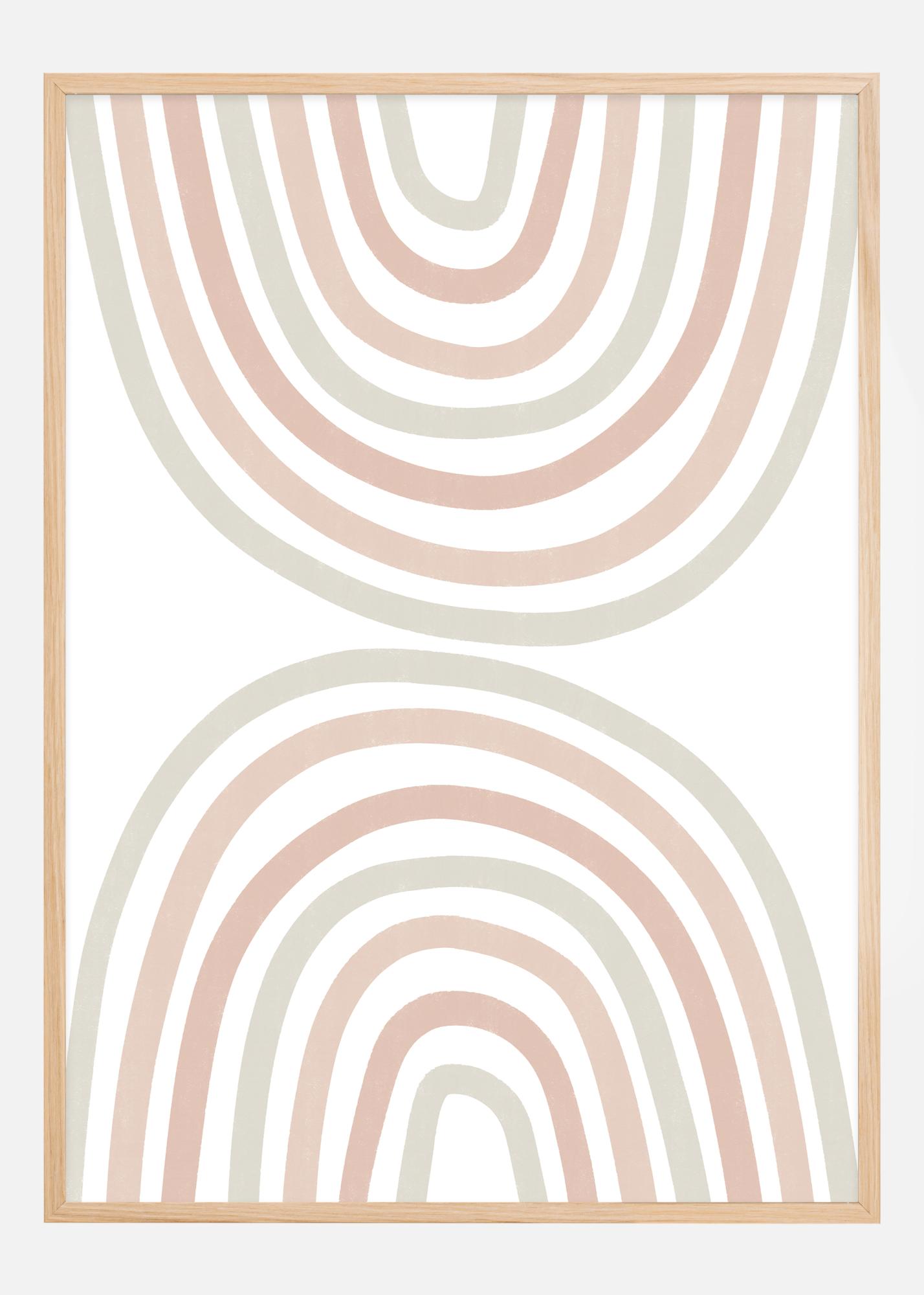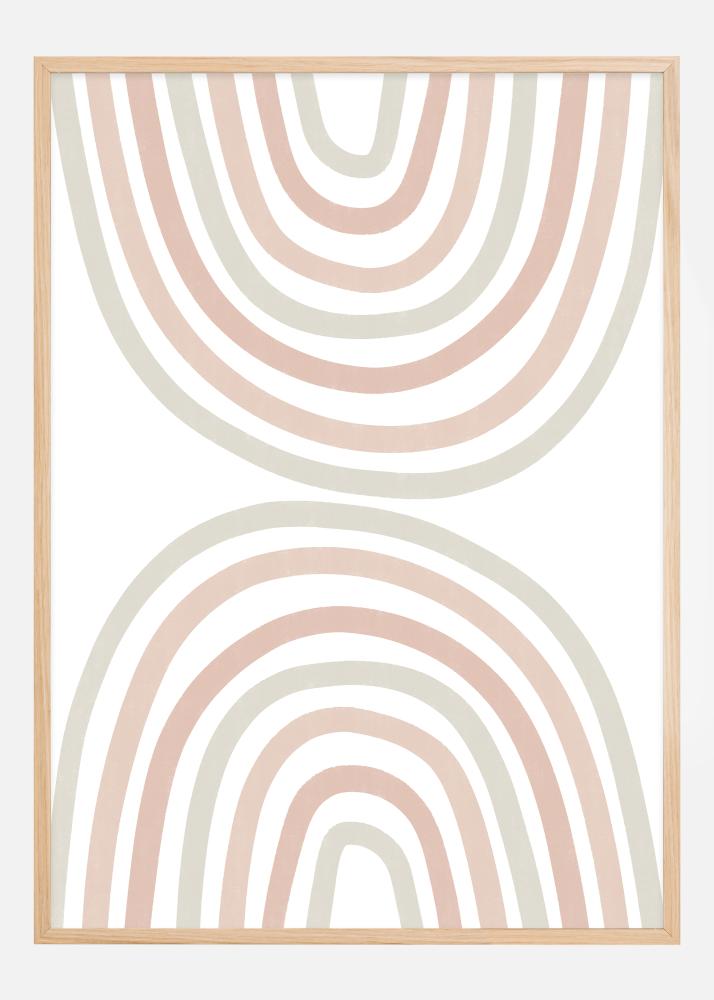 This modern and minimalist poster, titled "Double Rainbow," features a series of concentric arcs forming a double rainbow with a calm and relaxed color scheme. The soft tones of blue, beige, and terracotta are perfectly balanced to create a sense of harmony and tranquility in your space. The clean lines and simple design make this print a stylish addition to any modern interior design.