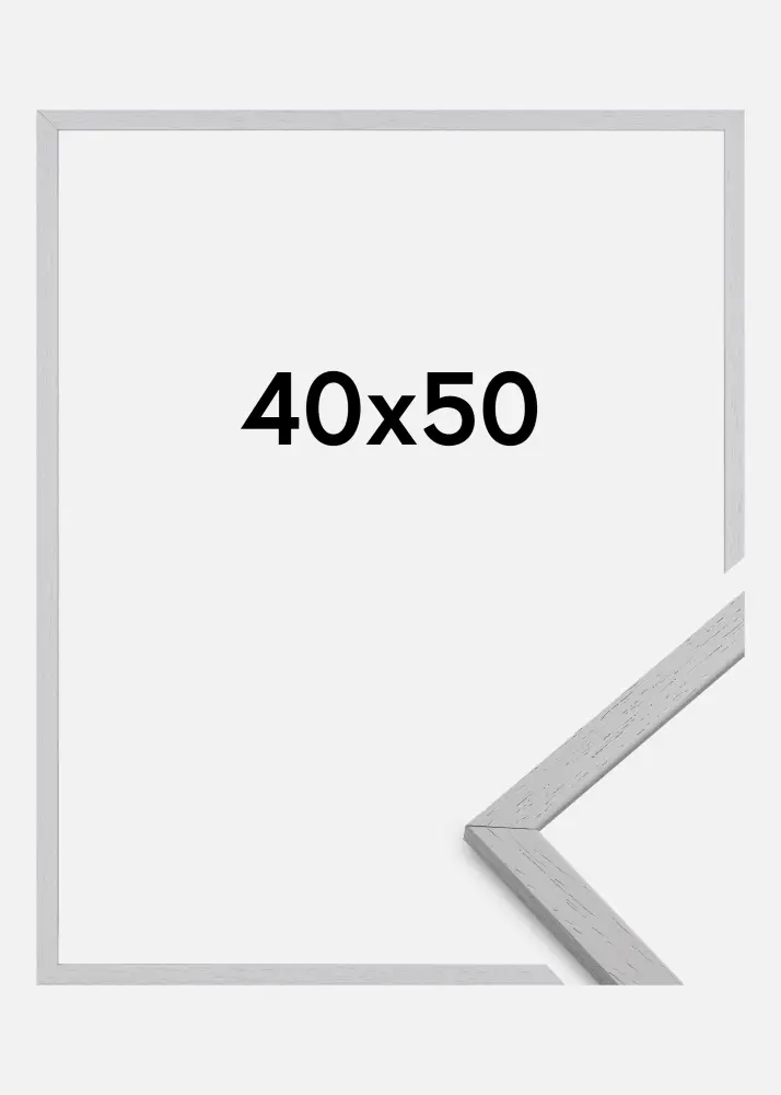 Edsbyn Grey is a high-quality photo frame with Swedish design. The frame is made from genuine ayous wood, and painted a stylish shade of grey. The angular contour of the frame, together with the grey colour, means that this photo frame has a very stylish and fashionable design that works in all kinds of home. The frame has float glass, which has an even surface and 40-45% UV protection. The frame is 13 mm wide and 11.5 mm deep. These well-balanced dimensions mean that this picture frame feels trim at the same time as still being stable. The frame has a rabbet depth (inner depth) of 8 mm, and plenty of space in case you want to complement your image with a mount and give it a stylish framing. This photo frame suits pictures measuring 40x50 cm.