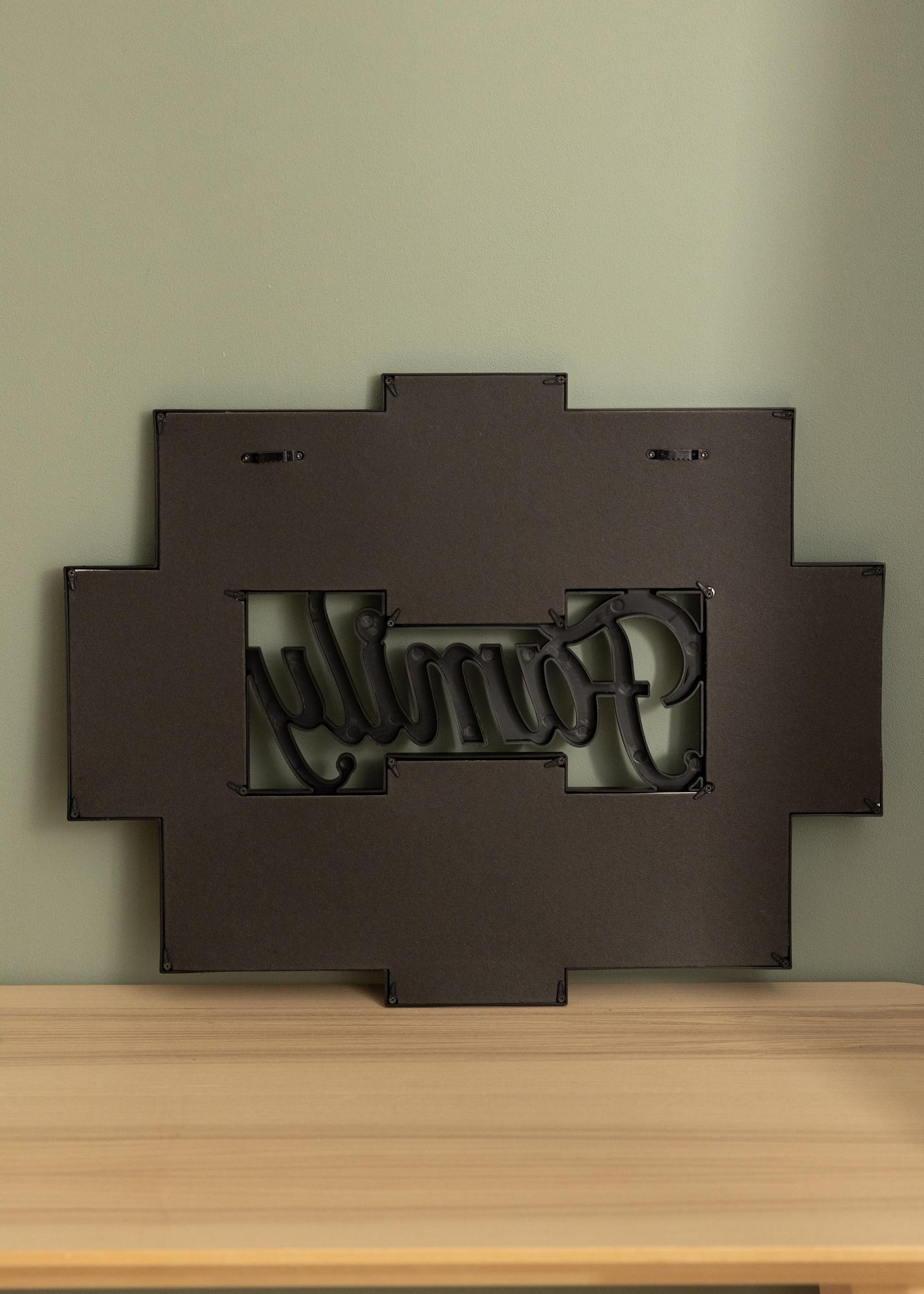 Hang up photos of the whole family in a stylish collage frame! This black frame holds 8 pictures in 10x15 cm, which are placed around the text "Family" that is carved out in the middle of the frame. There is space for photos in both portrait and landscape formats, so you can be more flexible when choosing which motifs you place in the frame. To mount your pictures in the collage frame, you loosen the back of the frame, using swivel clips, to then easily place your photos where you wish.