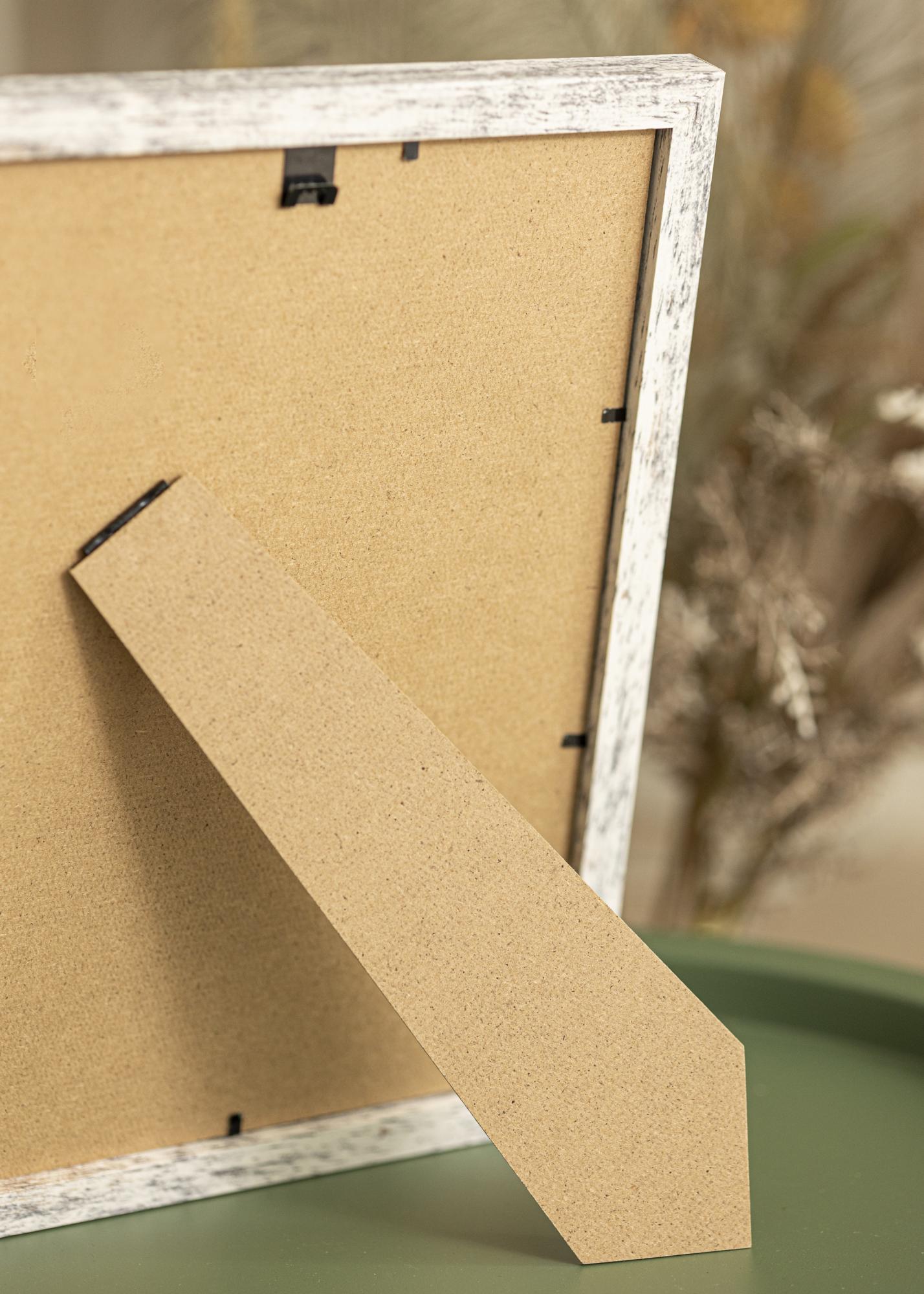 This wooden photo frame of washed white oak has a rustic and romantic feel to it. A frame with a decorative, rough appearance makes it look like the frame has been around for a while. The profile has a discreet inward lean against the glass, giving a striking and elegant appearance.