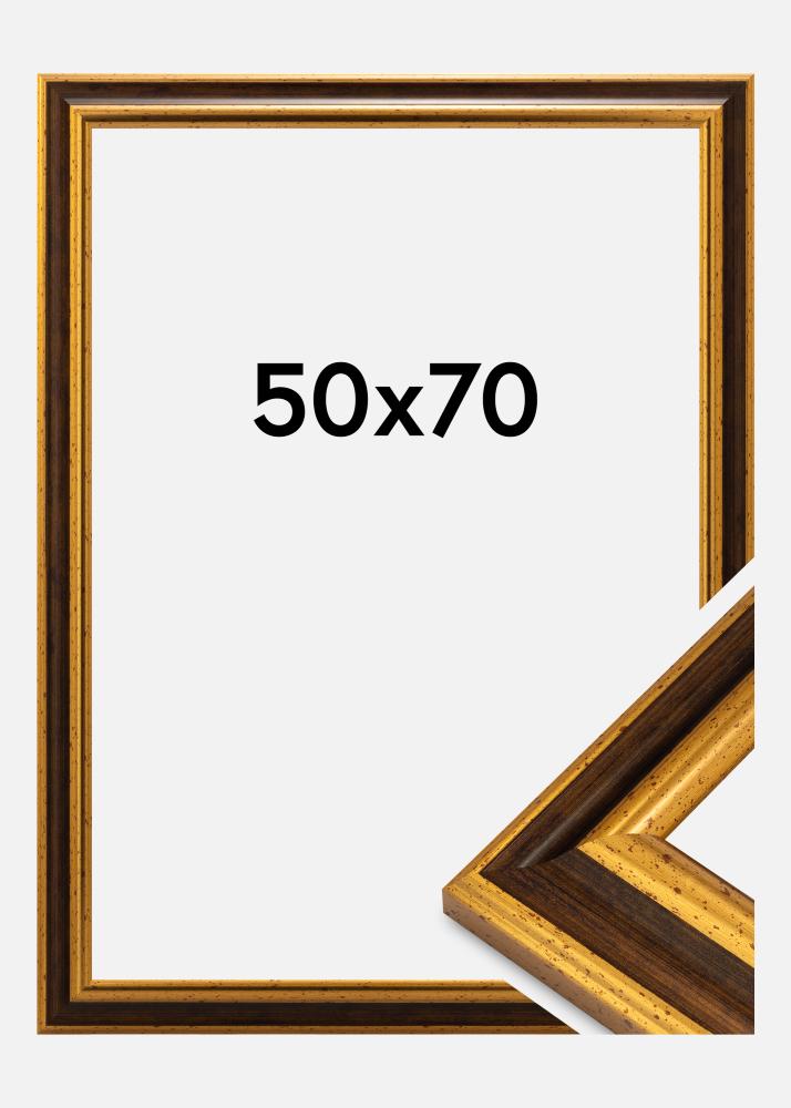 This photo Frame in size 50x70 cm is a perfect blend of classic elegance and modern functionality. With its warm Gold-coloured finish, it gives your artwork a luxurious setting that truly catches the eye. The 45 mm wide Frame profile with gently bevelled lines creates a depth that makes your picture stand out more on the wall.