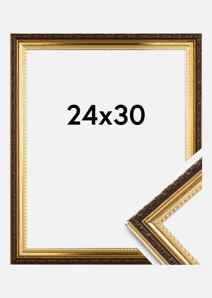 Looking for a beautifully decorated frame in a vintage style? Abisko Acrylic Glass Gold is a sturdy gold frame with unbelievably elegant detailing. The frame is 25mm wide and has a glossy gold colour with ornate brown edging. The vintage look is accentuated by an elegant wave pattern closest to the glass.