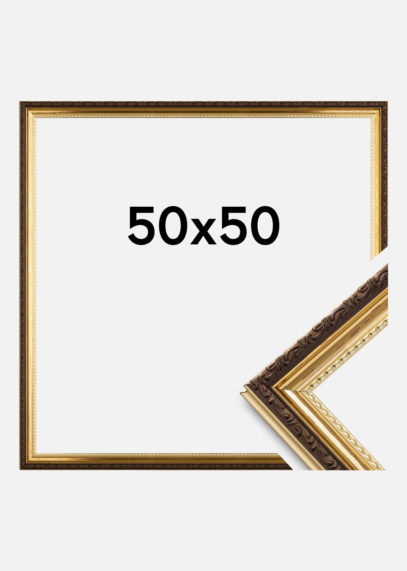 Looking for a beautifully decorated frame in a vintage style? Abisko Acrylic Glass Gold is a sturdy gold frame with unbelievably elegant detailing. The frame is 25mm wide and has a glossy gold colour with ornate brown edging. The vintage look is accentuated by an elegant wave pattern closest to the glass.