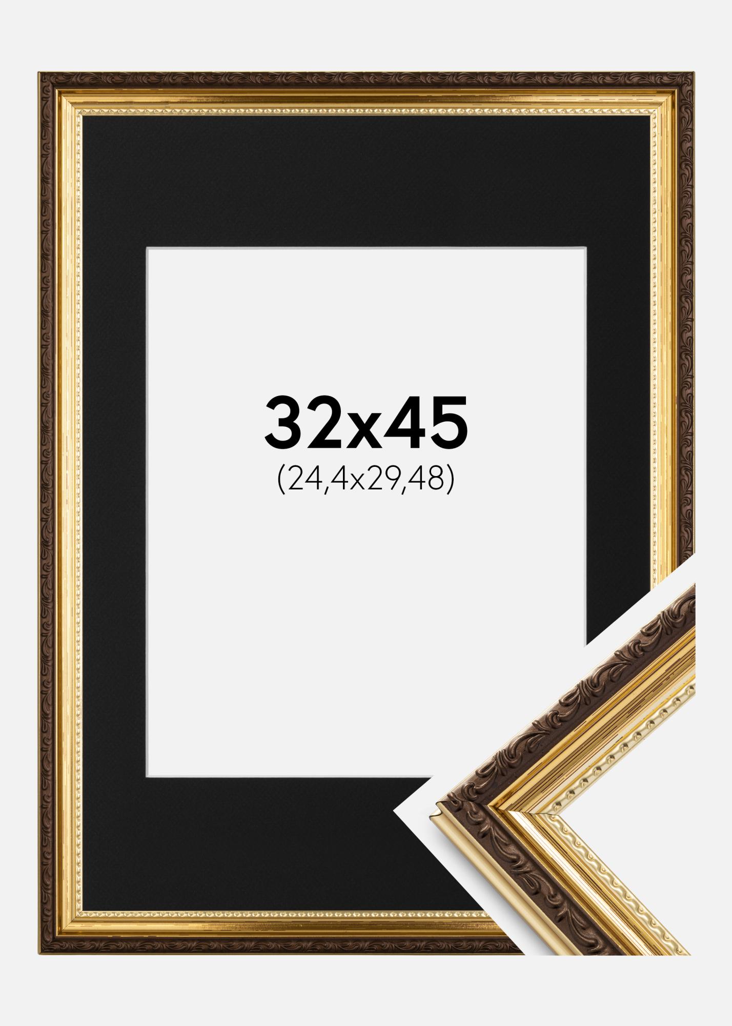 Frame Abisko Gold 32x45 cm - Picture Mount Black 10x12 inches (25.4x30.48 cm)