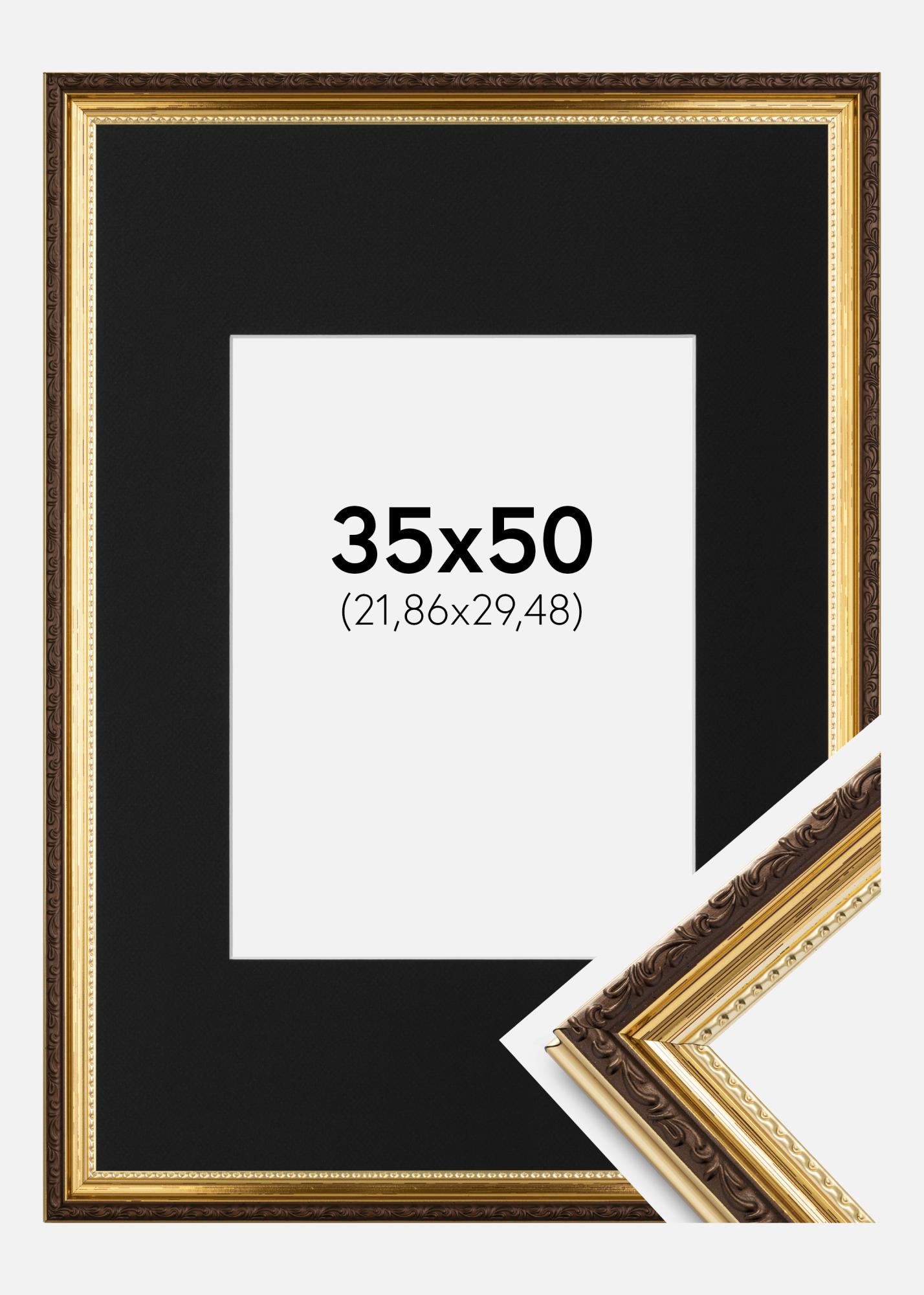 Frame Abisko Gold 35x50 cm - Picture Mount Black 9x12 inches (22.86x30.48 cm)