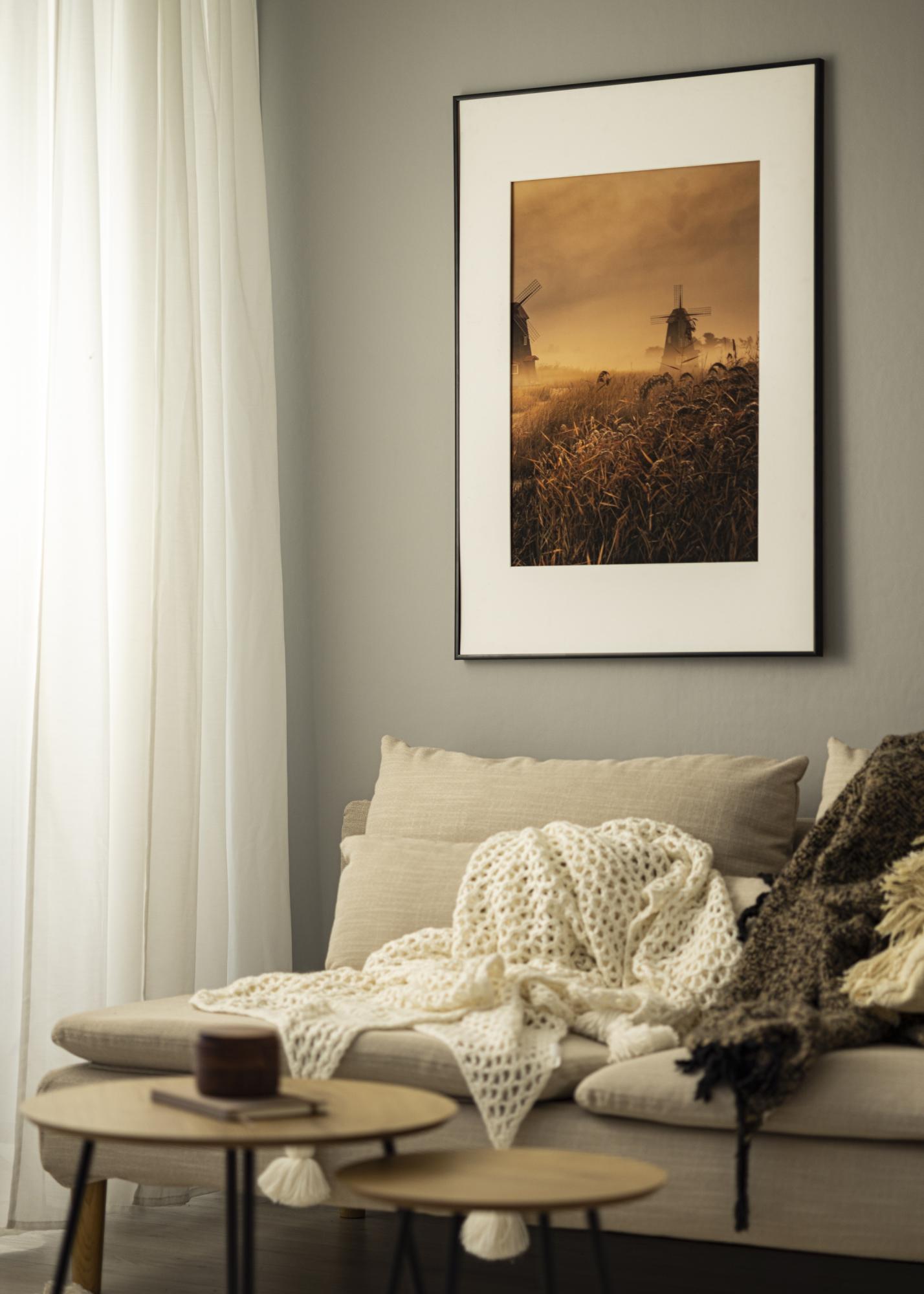 The acrylic glass in the frame has a protective film on both sides that is easily removed before use, ensuring that your art is presented without scratches or dust. With a profile of only 9 mm, the frame becomes a discreet yet present detail on your wall.