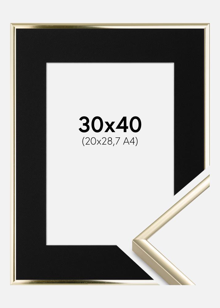 Frame Aluminium Shiny Gold 30x40 cm - Picture Mount Black 21x29.7 cm (A4)
