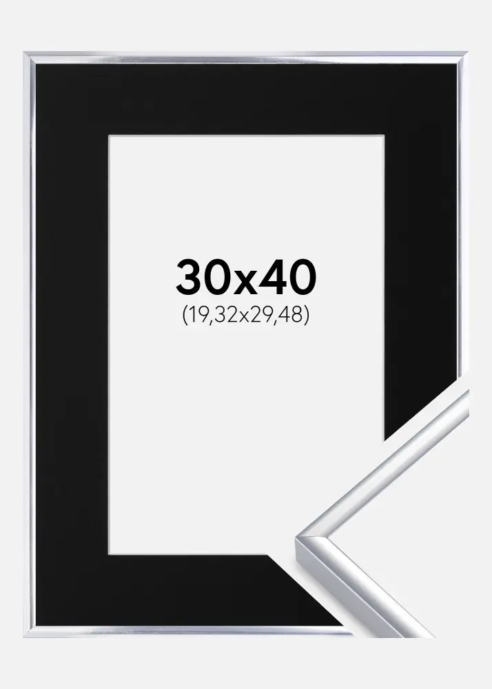 Frame Aluminium Shiny Silver 30x40 cm - Picture Mount Black 8x12 inches