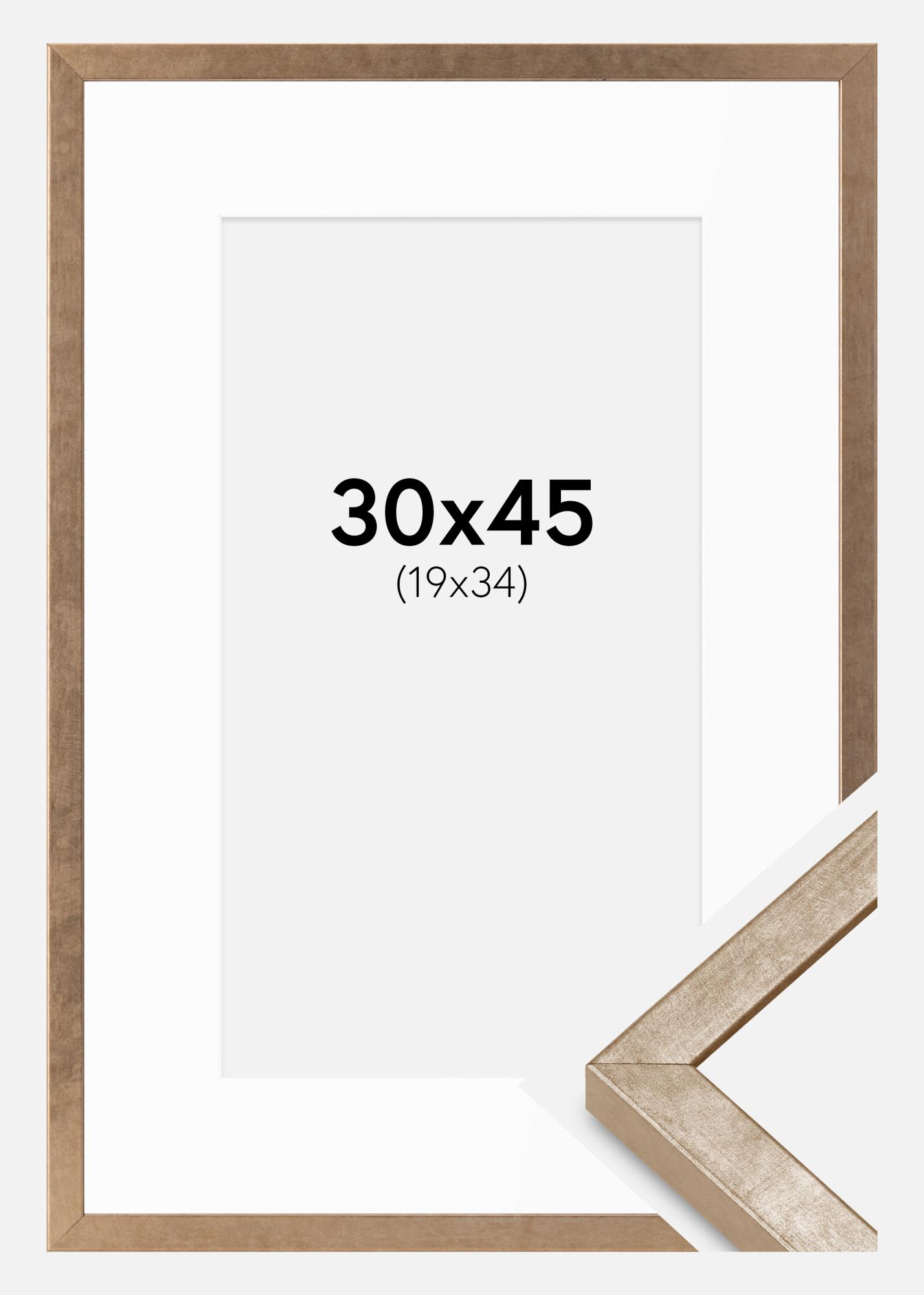 An elegant brass-colored frame with a mat can transform any room by giving your pictures a sophisticated framing. This frame, with its outer dimensions of 32x47 cm, is perfect for highlighting a photo in the size of 20x35 cm. With a width of 15 mm and a depth of 20 mm, the frame offers a stable and stylish framing that fits into most interior styles.