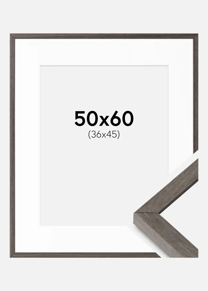 This frame comes with a white mat, which gives your photo an extra dimension and highlights the subject in a tasteful manner. The mat is adapted for pictures in the size of 37x46 cm, while the outer dimensions of the frame are 52x62 cm. By using a mat, an airy impression is created that draws attention to the photo and gives it a professional presentation.